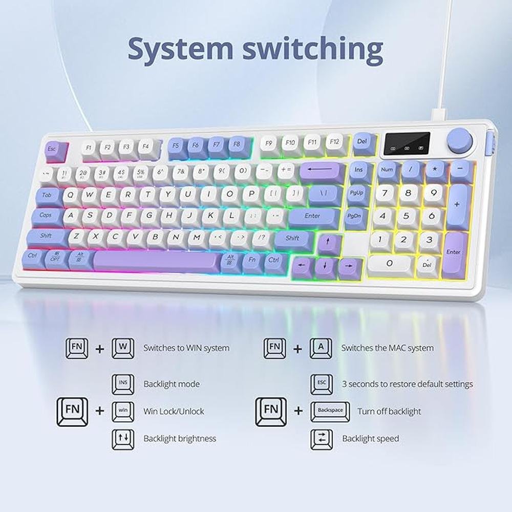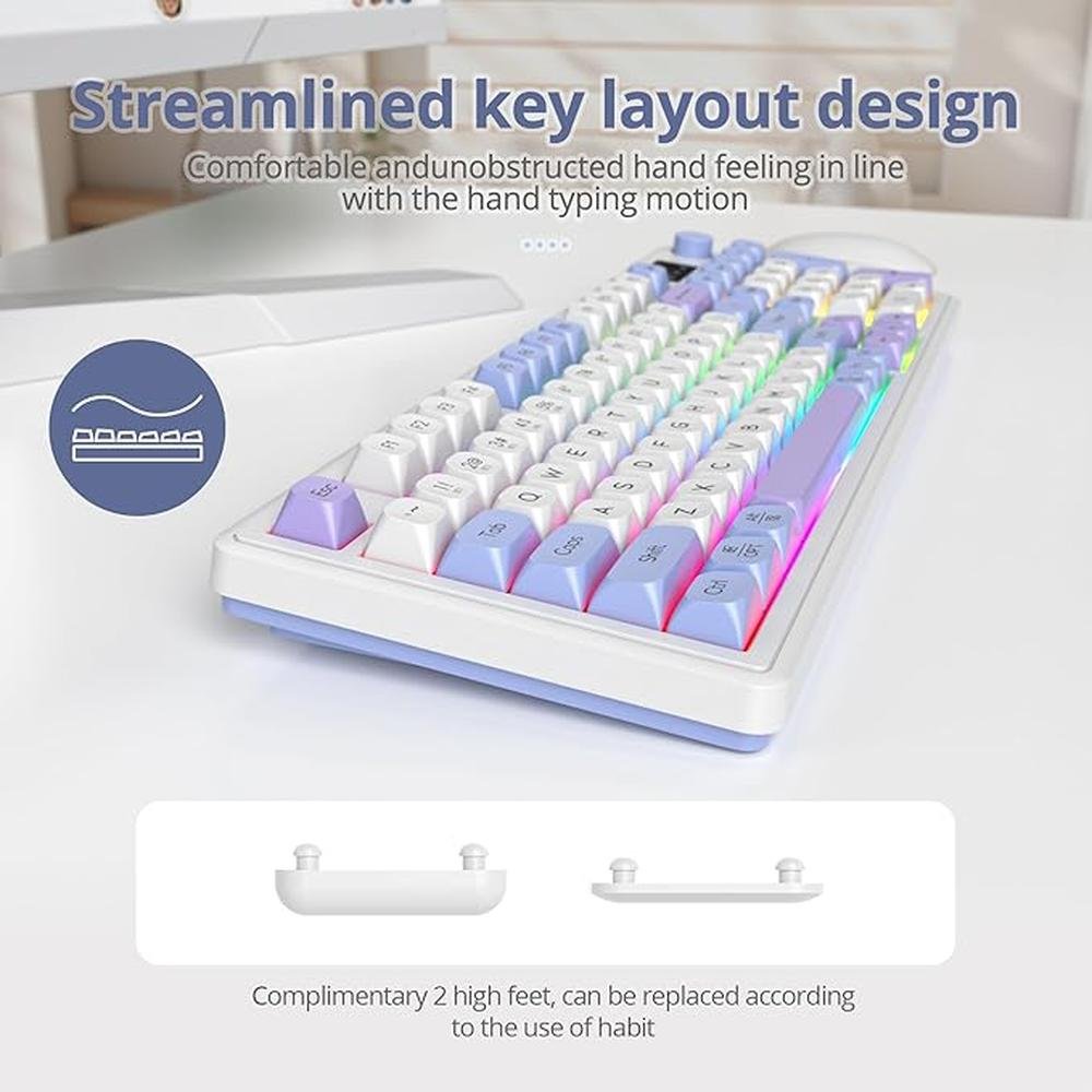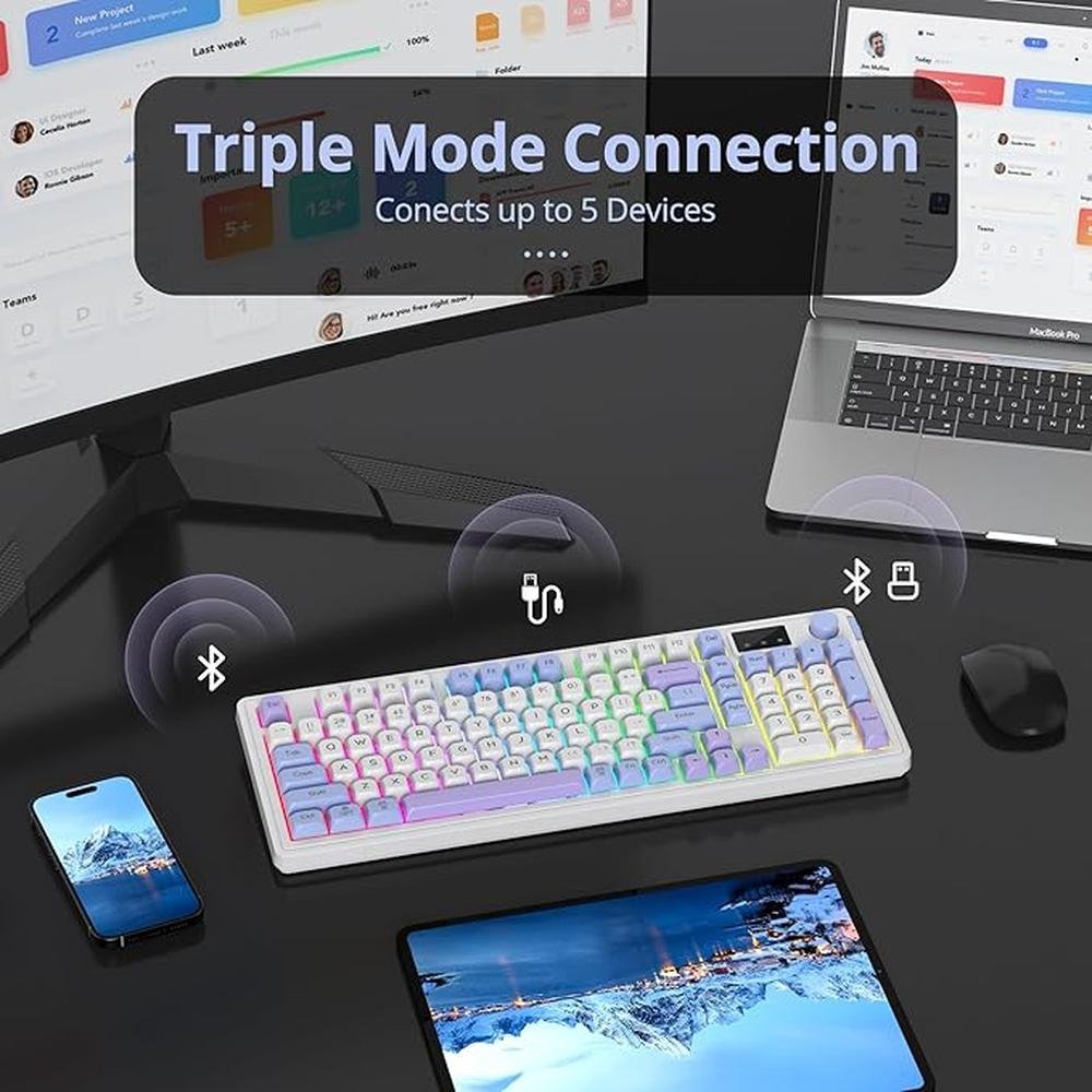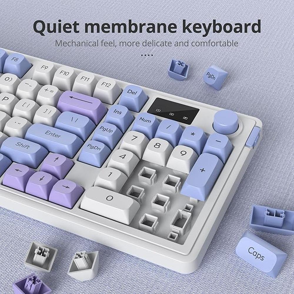 - Experience advanced gaming performance with our membrane keyboard, featuring quiet mechanical feeling and triple mode connectivity via Bluetooth 5.0, 2.4G, and wired connections for seamless gaming experiences.