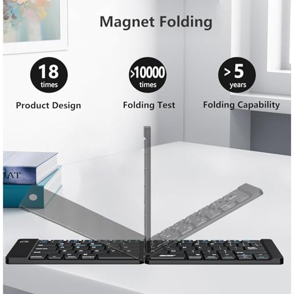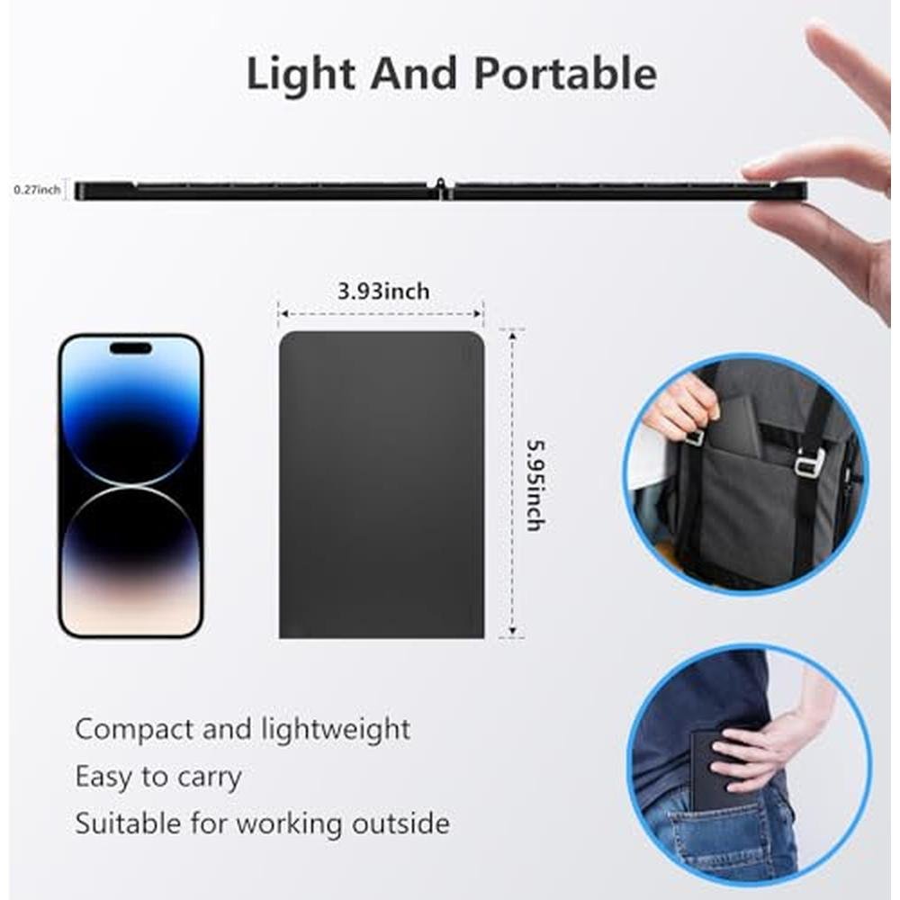 • Pocket Size & Easy to UseOnly 6oz palm size keyboard can be folded into your pocket or backpack. Simply press a button to quickly pair with your devices. With the PopBloom folding keyboard, you can start typing your ideas quickly from anywhere!
