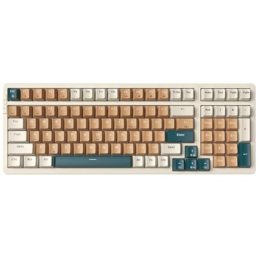 Mechanical Gaming Keyboard | Qisan Wireless/Wired Triple Mode 2.4G USB-C BT 98 Wireless Mechanical Keyboard with US Layout Blue Switch Rechargeable RGB Backlit Keyboards for Gaming Brown Combo