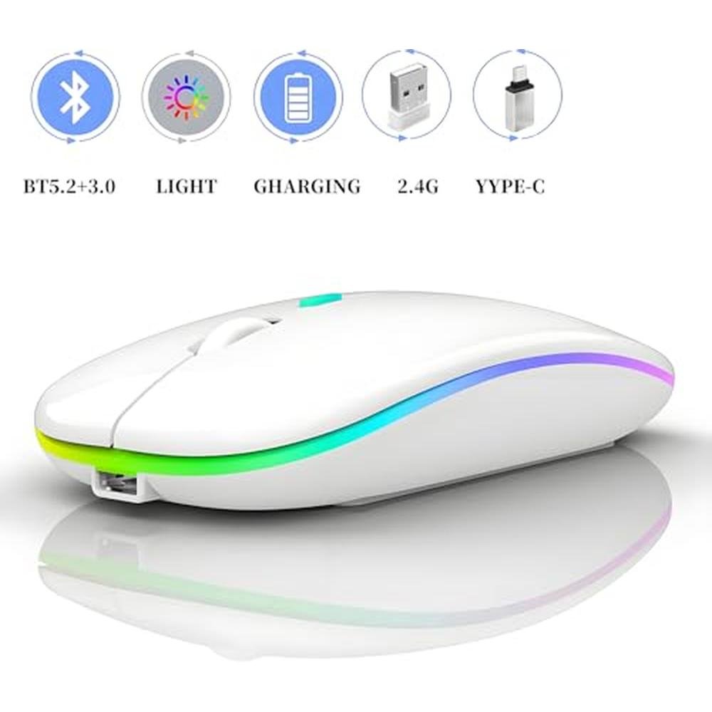 Premium Wireless Bluetooth Mouse for MacBook Air, Mac Pro, Laptop, and PC | Qullqian Advanced Dual-Mode Switch Technology | Rechargeable and Compatible with Bluetooth 5.2 and 2.4GHz USB Receiver