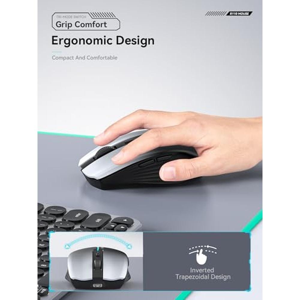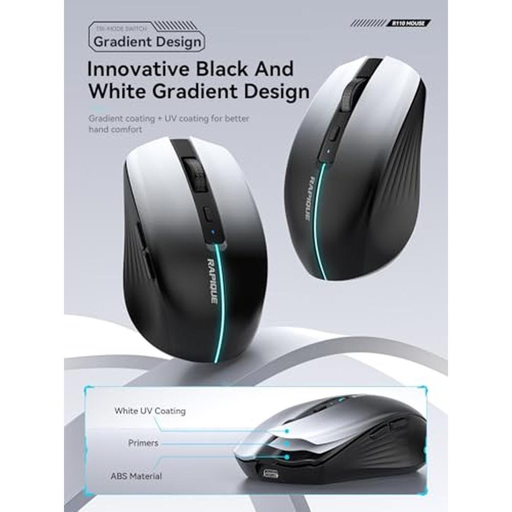 Elevate Your Productivity with the RAPIQUE R110 Wireless Mouse White to Black Gradient Edition | Premium-grade Bluetooth 5.1 and 2.4G Connectivity | Ergonomic 6-Button Design for Windows, MacOS, Android, and More