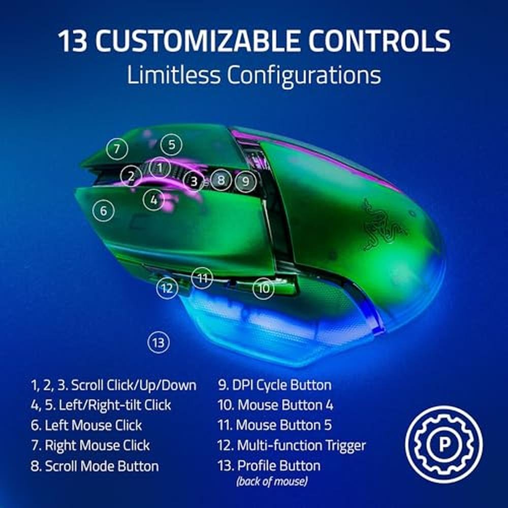 Indulge in the pinnacle of gaming excellence with the Razer Basilisk V3 Pro, a premium wireless gaming mouse that redefines the gaming experience. With its cutting-edge 35k optical sensor gen 2, this mouse offers unparalleled accuracy and precision, making it a must-have for serious gamers. The hyperscroll tilt wheel and 13 customizable controls provide a level of customization and control that's unmatched in the industry. The RGB optical switches gen 3 and up to 140-hour battery life ensure a seamless and immersive gaming experience. Whether you're a professional gamer or an enthusiast, the Razer Basilisk V3 Pro is the ultimate choice for those who demand the very best.