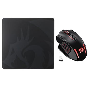 Elevate your gaming performance with the Redragon M913 Impact Elite Wireless Gaming Mouse and Black PG1M Glass Mouse Pad, featuring a high-performance 32,000 CPI optical sensor and up to 72 hours of battery life.