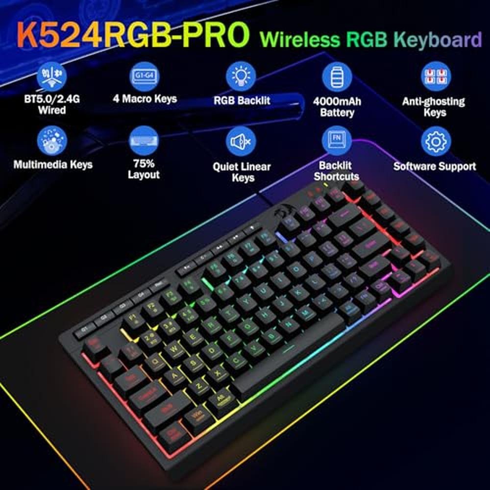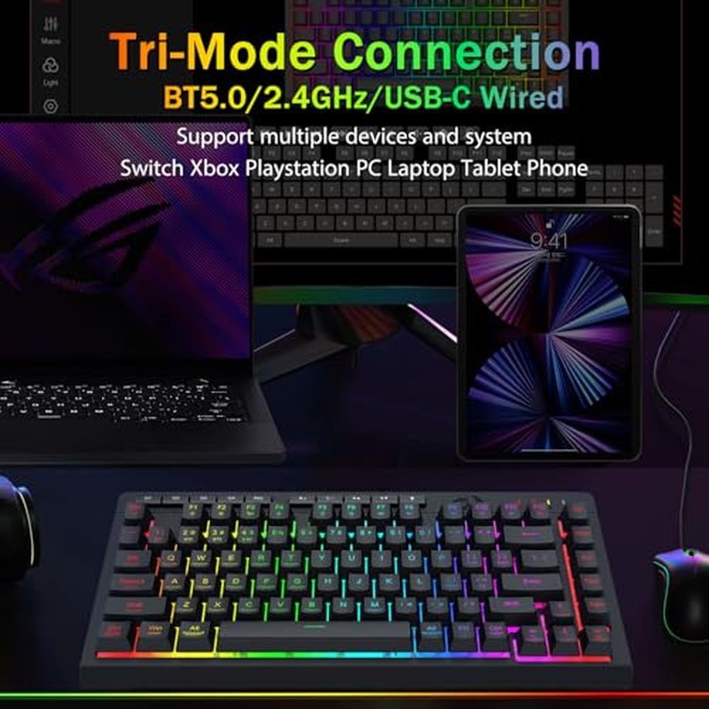 Gaming Keyboard | Redragon Portable Wireless 75% Mini RGB Backlit | Rechargeable 4000mAh Battery Anti-Ghosting