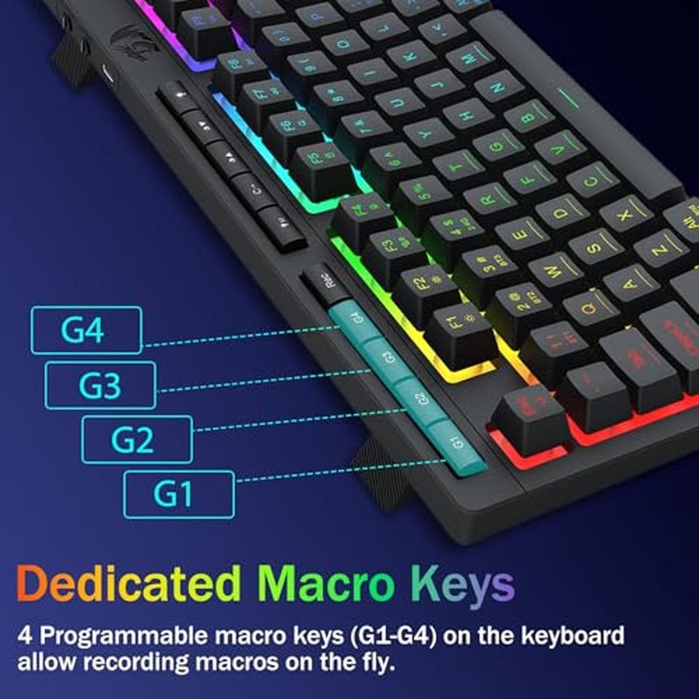 - The Redragon keyboard boasts vibrant RGB backlit keys, providing an immersive and engaging gaming experience, with customizable lighting effects