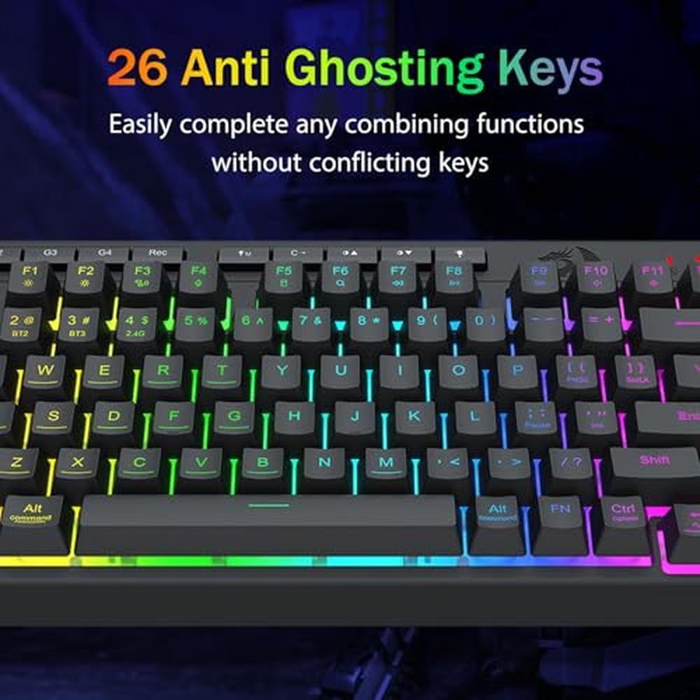Indulge in the ultimate gaming experience with the Redragon Portable Wireless Gaming Keyboard, expertly designed to deliver exceptional speed, precision, and durability. As a top-tier choice among gamers, the Redragon keyboard stands out for its versatility, offering seamless Bluetooth, 2.4GHz, and USB-C wired connectivity options. This sophisticated 75% mini quiet macro membrane keyboard features vibrant RGB backlit keys, providing an immersive and engaging gaming experience. With its high-performance rechargeable 4000mAh battery and advanced anti-ghosting technology, this premium-grade keyboard ensures uninterrupted gaming sessions on both Windows and Mac platforms. Whether you're looking for a superior gaming keyboard, the Redragon Portable Wireless Gaming Keyboard is the ultimate choice for gamers seeking a high-quality, deluxe gaming experience.