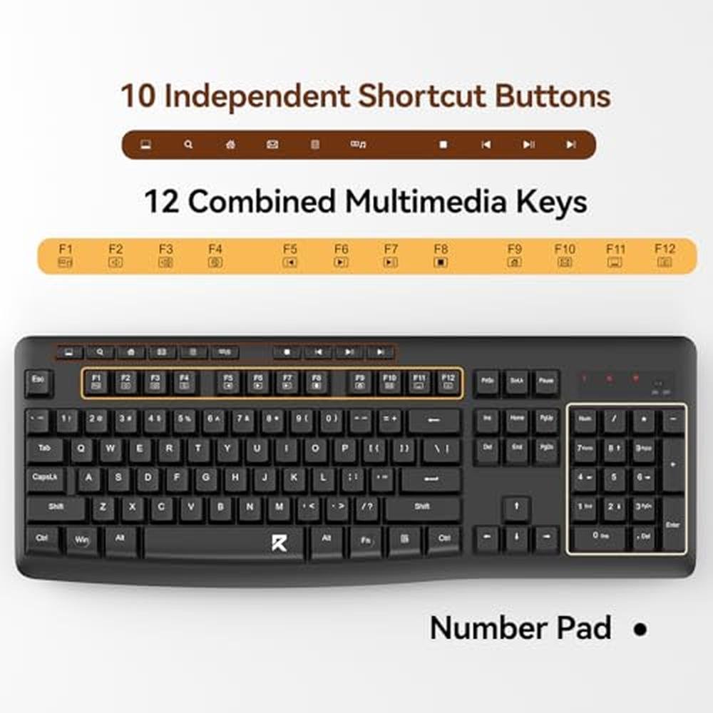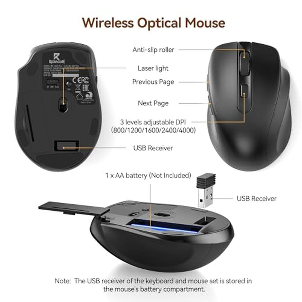 Wireless Keyboard Mouse | Redragon BS-7367 2.4G Full-Sized Ergonomic Computer Keyboard and 5-Level DPI Adjustable Wireless Mouse Combo | Premium Wireless Peripherals