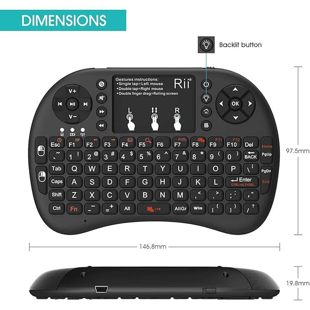 Keyboard Rii | Rii 2.4GHz Mini Wireless Keyboard with Touchpad | QWERTY Backlit Portable with Remote Control