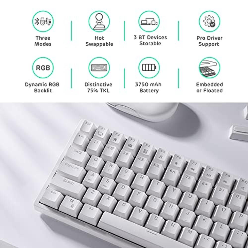 - That is THREE MODES: Believe it or not, this is the first generation of RGB three-mode wireless keyboards. Wireless mode with stable BT5.0, hassle-free 2.4Ghz dongle plus USB-C wired mode set no limits about your keyboard connection.