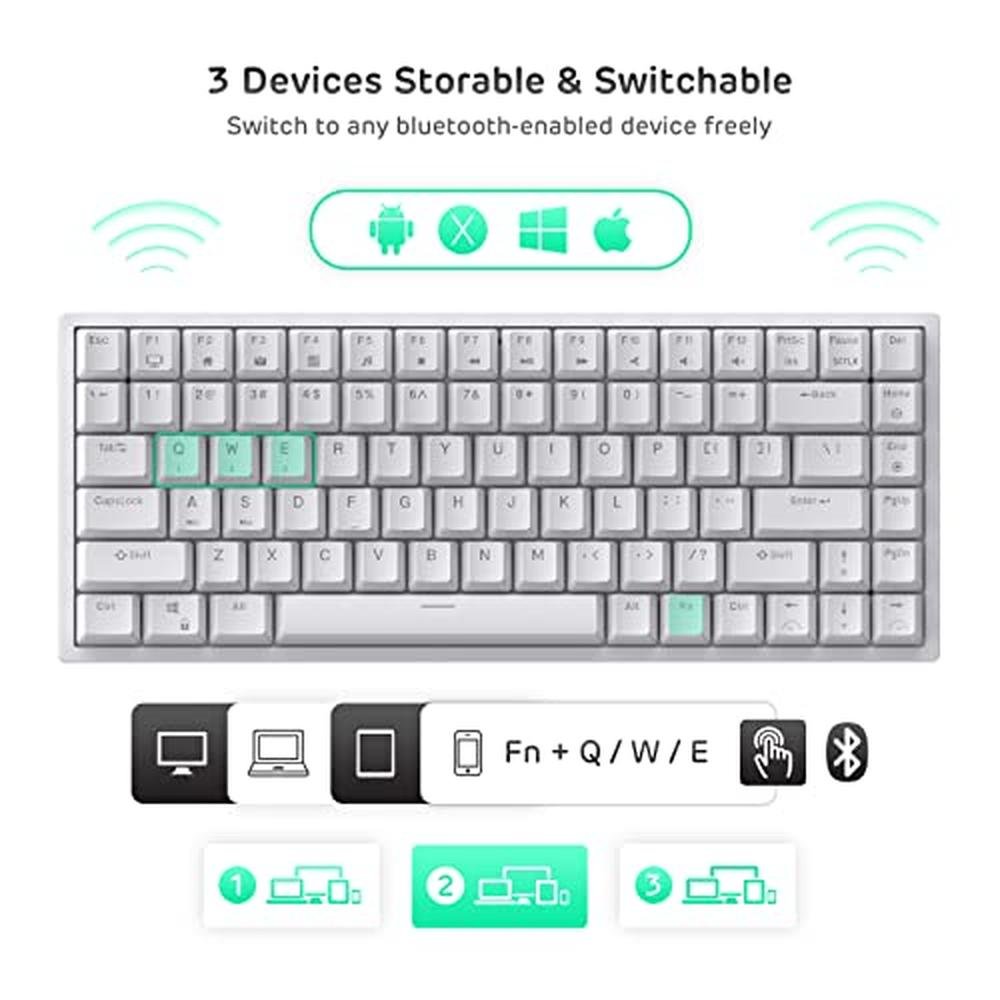 RK ROYAL KLUDGE RK84 Wireless RGB 75% Triple Mode BT5.0/2.4G/USB-C Hot Swappable Mechanical Keyboard, 84 Keys Wireless Gaming Keyboard w/High-Capacity Battery, Clicky Blue Switch