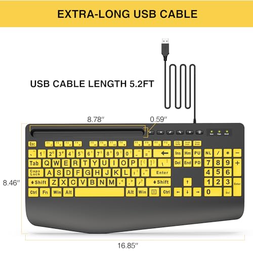 Explore the advanced features of the SABLUTE Large Print Keyboard, including its high-quality construction, spill-resistant design, and durable keys. This top-tier keyboard is built to last, with a focus on delivering unparalleled performance and reliability. With its unique combination of style, comfort, and functionality, the SABLUTE Large Print Keyboard is the perfect addition to any home or office setup. Experience the difference that a premium-grade keyboard can make, and discover a new world of typing comfort and convenience.