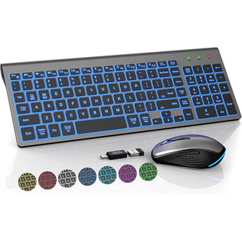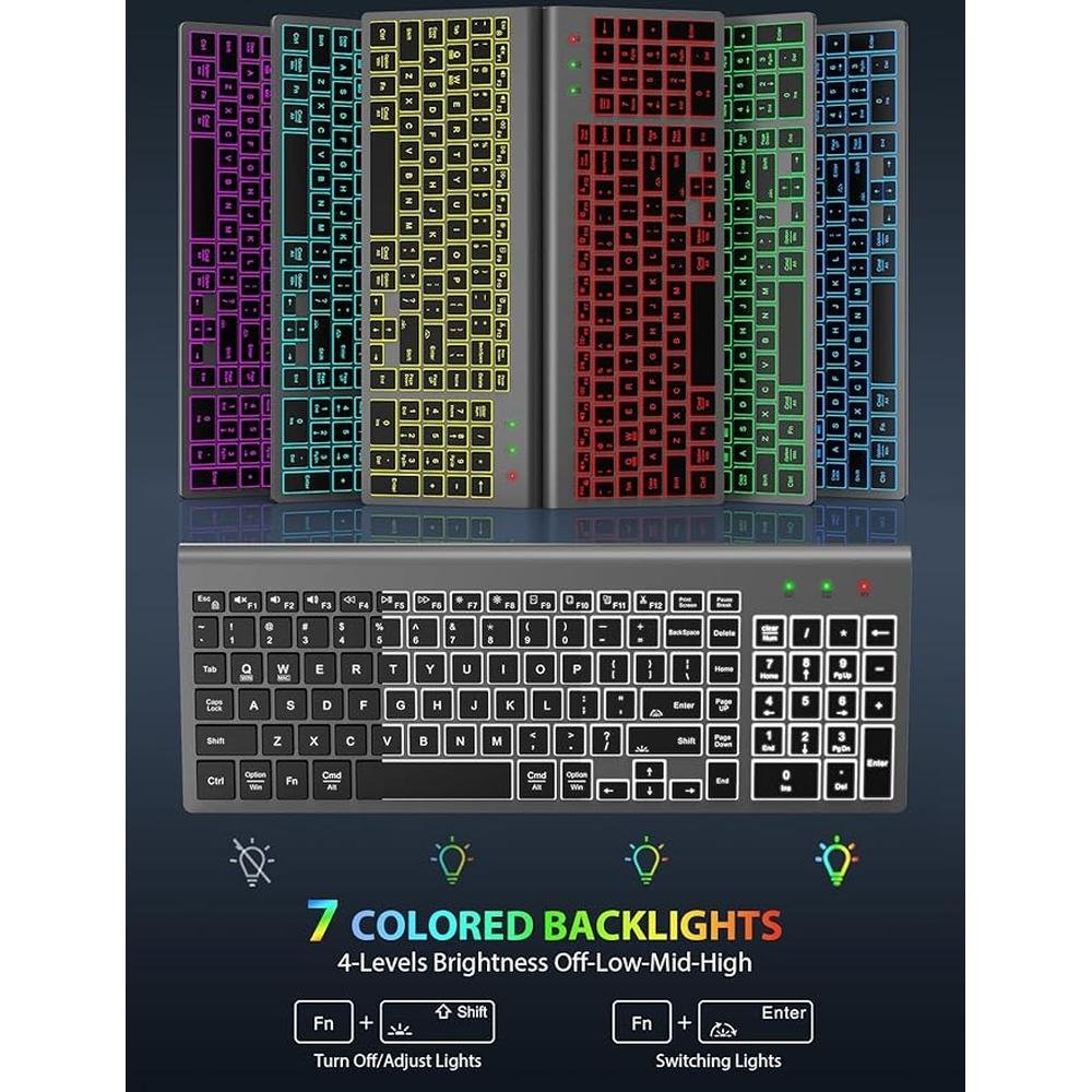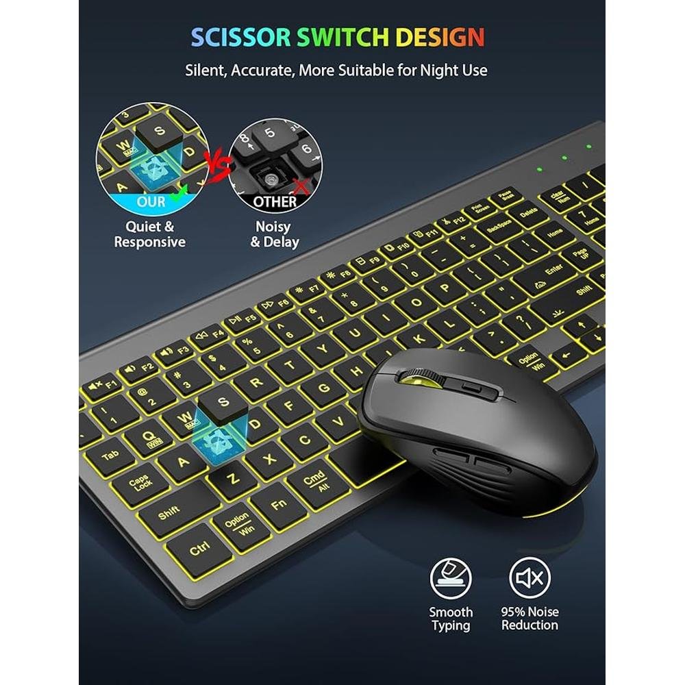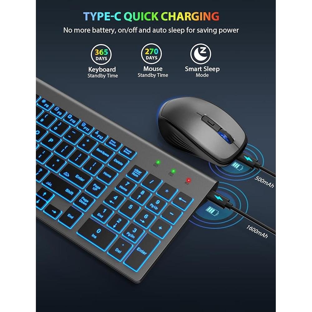 Keyboard Mouse | Sablute Wireless Keyboard and Mouse Combo Backlit Compact Quiet Keyboard with RGB Mouse Rechargeable Slim Sleep Mode Portable Cordless Keyboard Mouse Set for Mac Windows Laptop Space Gray | Luxury Gaming Peripheral