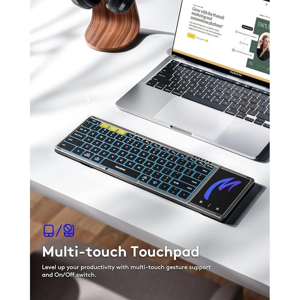 Samsers Foldable Bluetooth Keyboard | Premium Wireless Folding Keyboard with Touchpad and Backlight | 3-Device BT5.1 Support