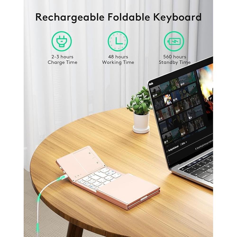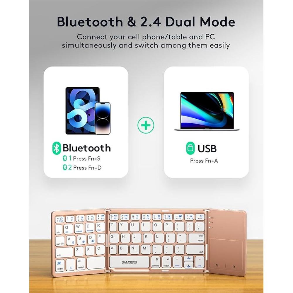 Keyboard Samsers | Samsers High-End Foldable Bluetooth Keyboard with Touchpad | Rechargeable Dual-Mode 2.4G BTX2 Wireless Keyboard