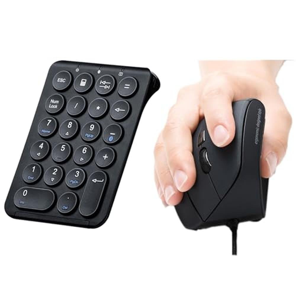 Ergonomic Computing Experience | SANWA ERG9 Wired Mouse + Bluetooth Keypad | Premium-grade Vertical Mice with LED Light, 1000/1600 DPI, Wireless Ten Key Number Pad, Compatible with Mac, Windows, Laptop, PC