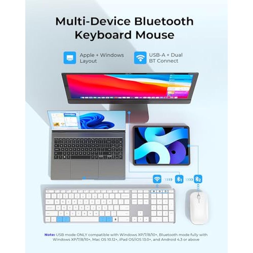 - Seenda Wireless Bluetooth Keyboard and Mouse Combo features dual Bluetooth connectivity for seamless switching between devices