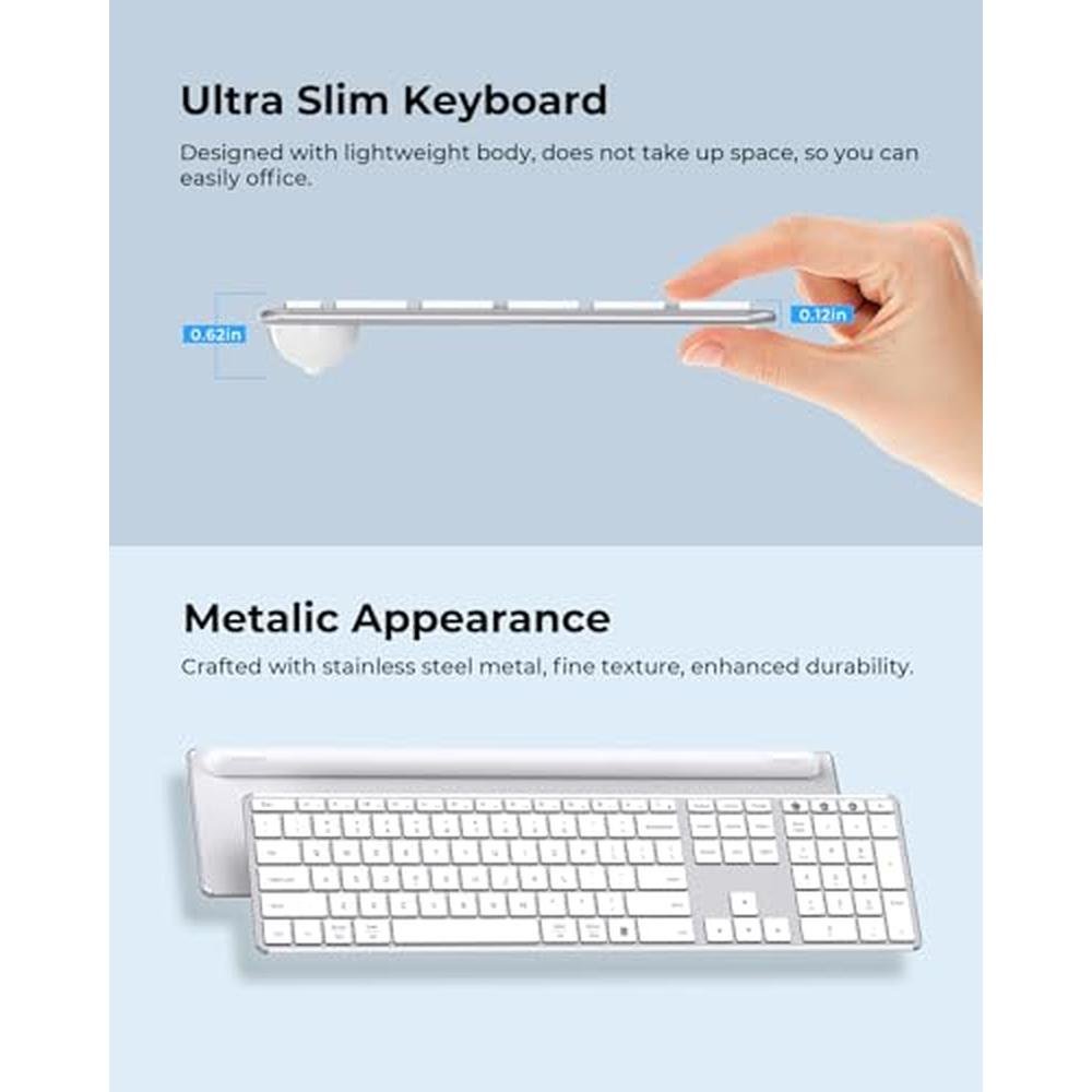 Keyboard Mouse | Seenda Wireless Bluetooth Keyboard and Mouse Combo SKM64-3 Multi-Device Rechargeable Slim Keyboard and Mouse | Ultimate Productivity