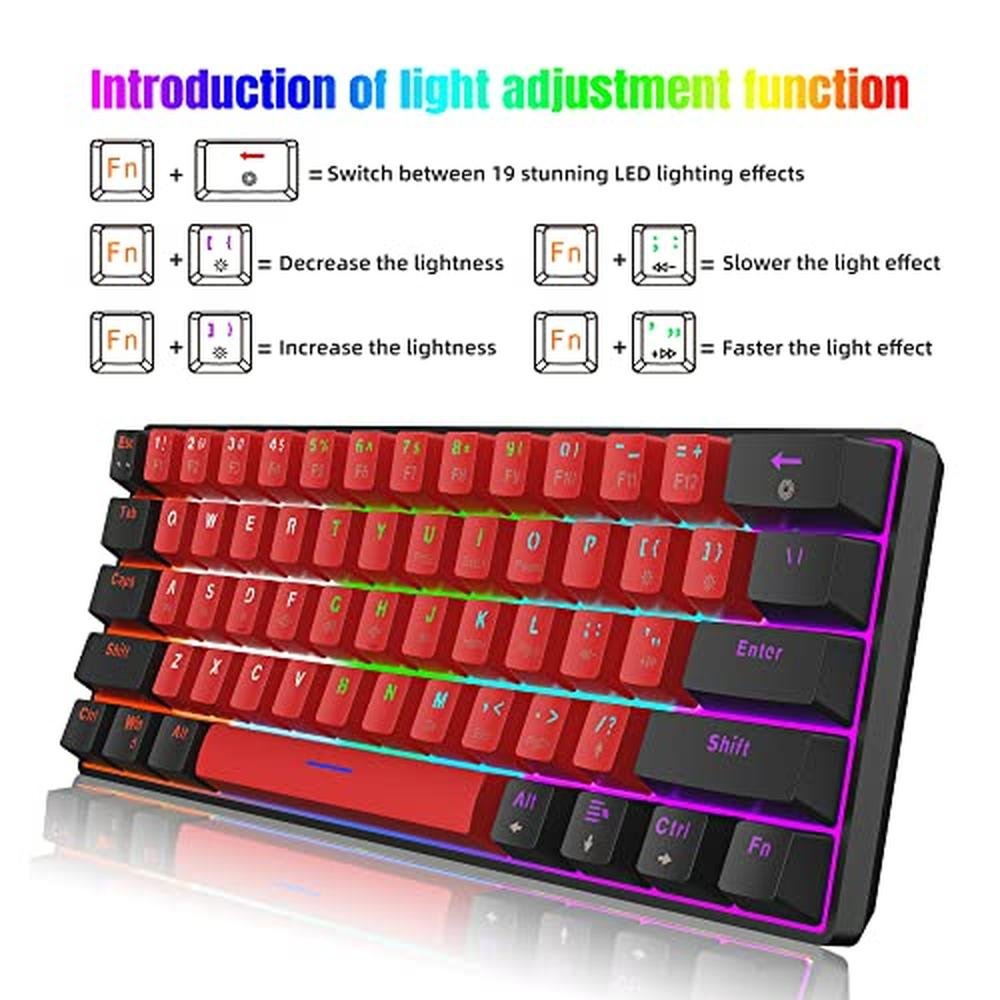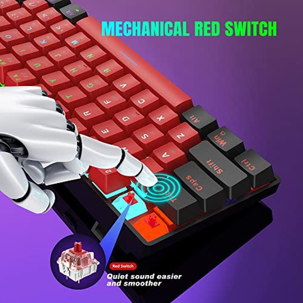 Gaming Keyboard | Snpurdiri 60% Wired Mechanical Keyboard Mini with 61 Keys for PC Windows | Premium Red Switches
