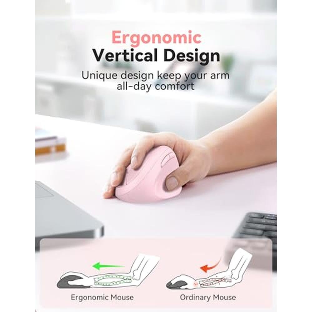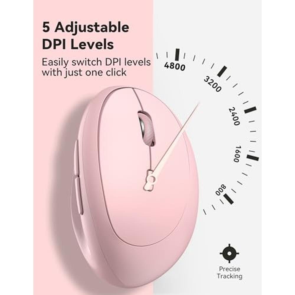 - 4800 DPI wireless vertical mouse with 5-adjustable DPI levels for enhanced gaming and work experience
