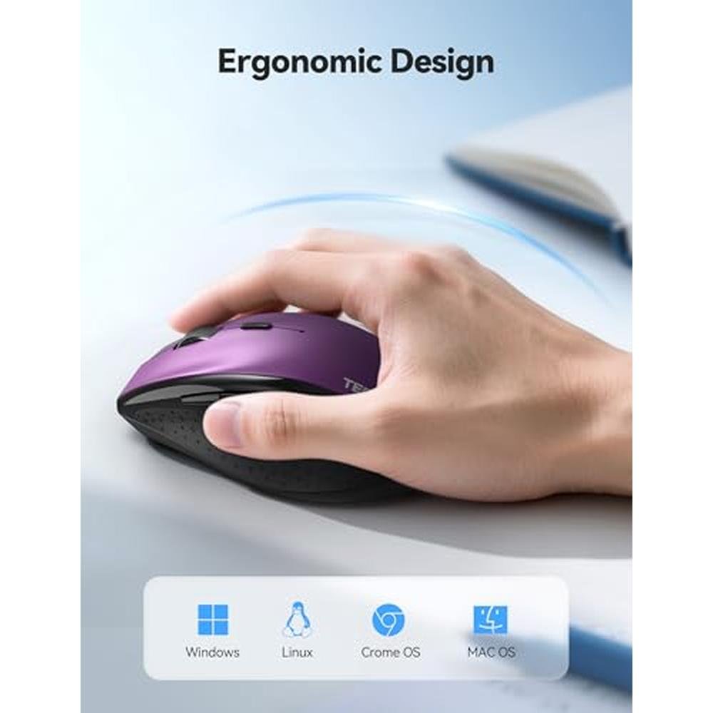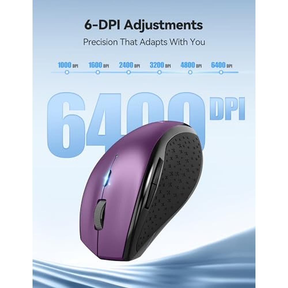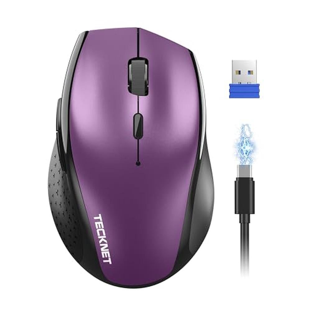 Unlock seamless navigation with the TECKNET PRO Rechargeable Wireless Mouse, designed for optimal comfort and performance. Enjoy extended usage with its 800mAh long battery life and silent click technology. This 6-button cordless mouse features 6 adjustable DPI settings (up to 6400) and supports seamless connectivity with PC, Mac, Chromebook, and other devices. Elevate your workspace with the sleek purple design, perfect for professionals and gamers alike.