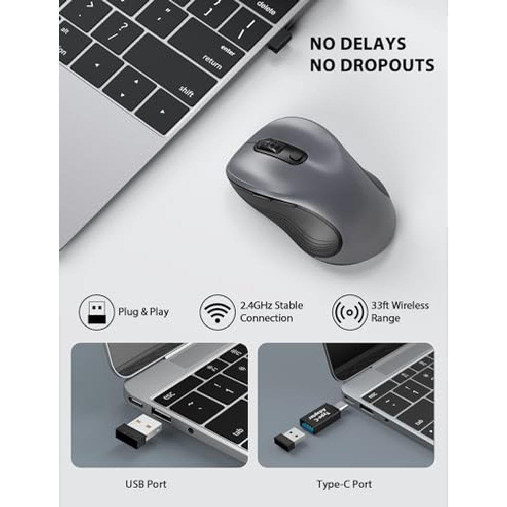 Experience seamless navigation with the Trueque Wireless Mouse, designed for ergonomic comfort and precision. This 2.4GHz computer mouse features 6 buttons, including back and forward buttons, for effortless browsing and productivity. With 3 adjustable DPI levels, you can customize your cursor speed to suit your needs. Whether you're working on a Windows PC or engaging in your favorite gaming sessions, this optical USB cordless mouse ensures a reliable and lag-free experience. The Trueque Wireless Mouse boasts advanced mouse buttons, allowing for intuitive navigation and control. Explore the full potential of your laptop with this premium-grade wireless mouse, available in a sleek gray finish (1 Pack).