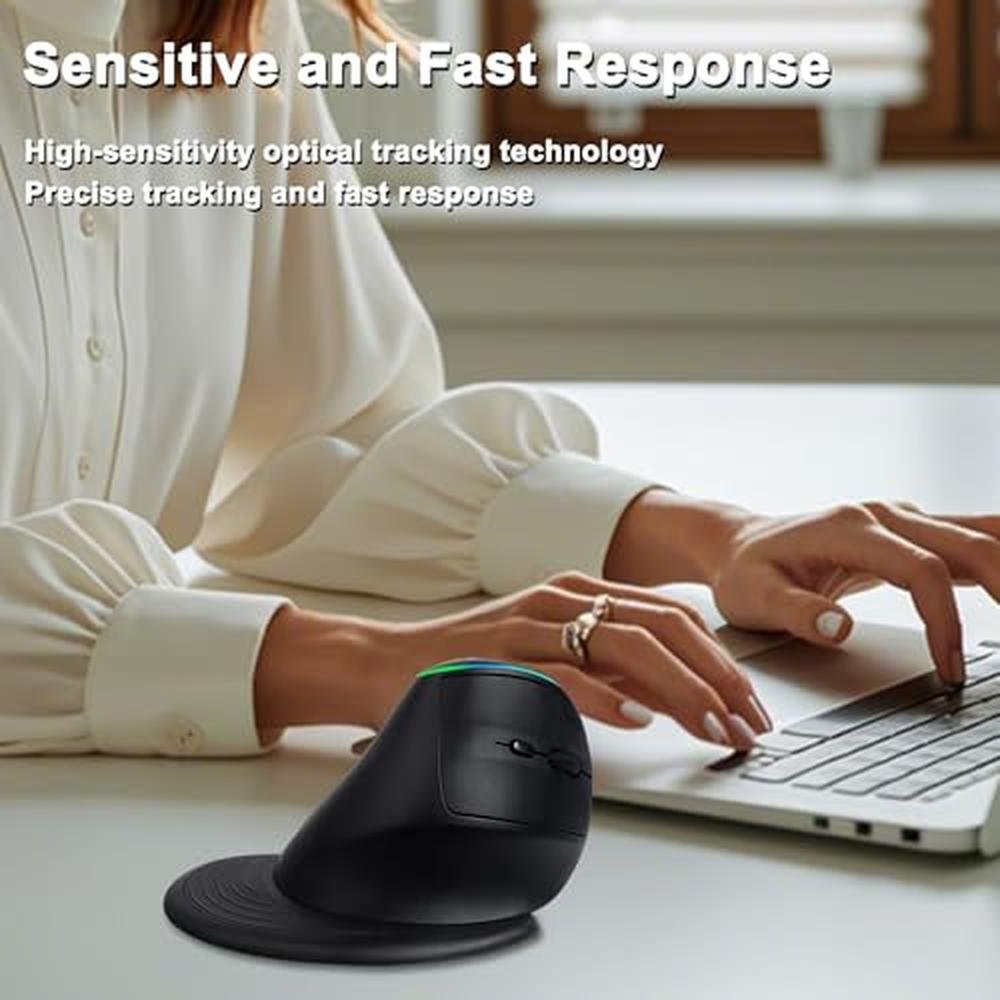 - 6 RGB Adjustable Lights - Our vertical ergonomic mouse wireless features 6 adjustable RGB lights, you can adjust the lighting of the wireless ergonomic mouse according to your own needs and preferences, creating a fascinatingly cool visual effect and an immersive working experience.