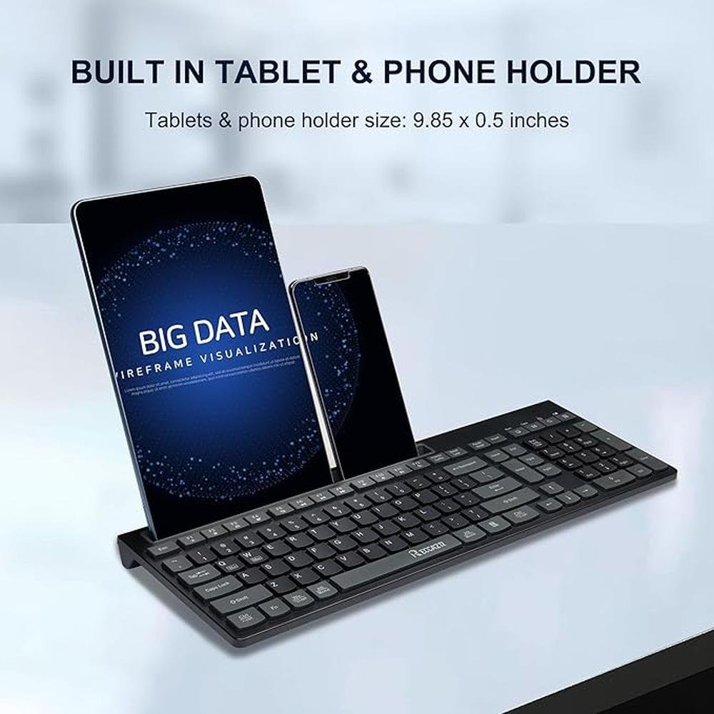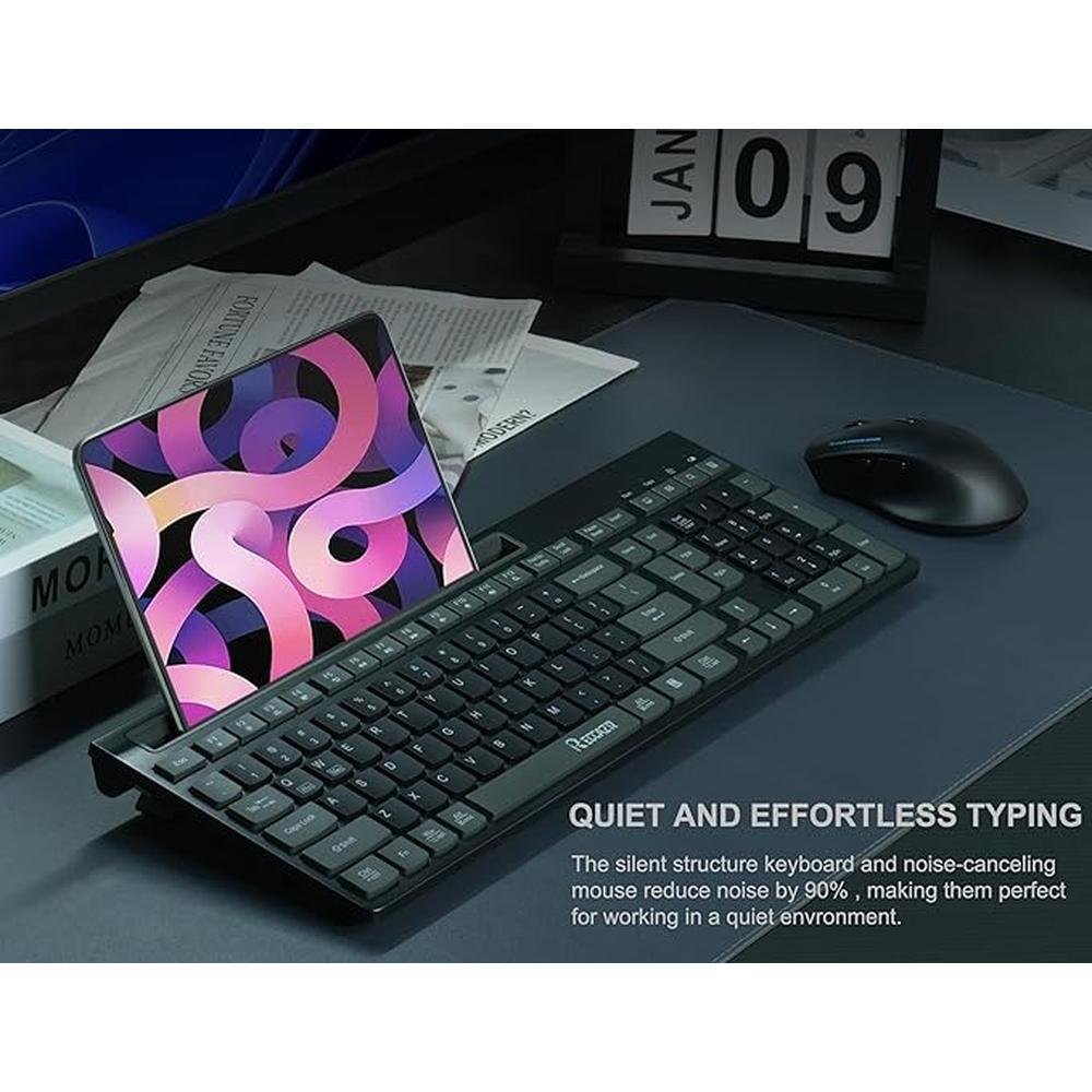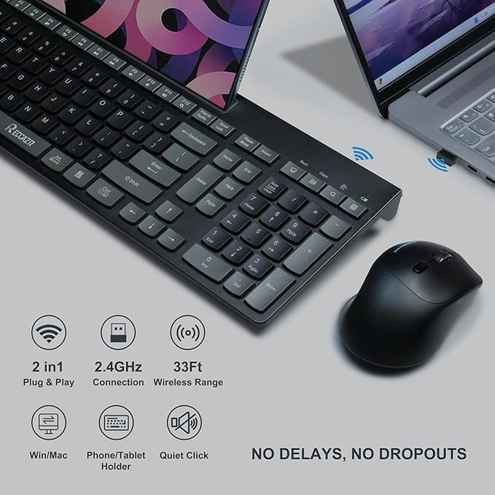 RECCAZR Wireless Keyboard and Mouse Combo, 2.4Ghz Silent Wireless Computer Keyboard with Phone Tablet Holder, 3 DPI Adjustable Ergonomic Mouse, Compatible with Mac Windows (Black & Gray-A)