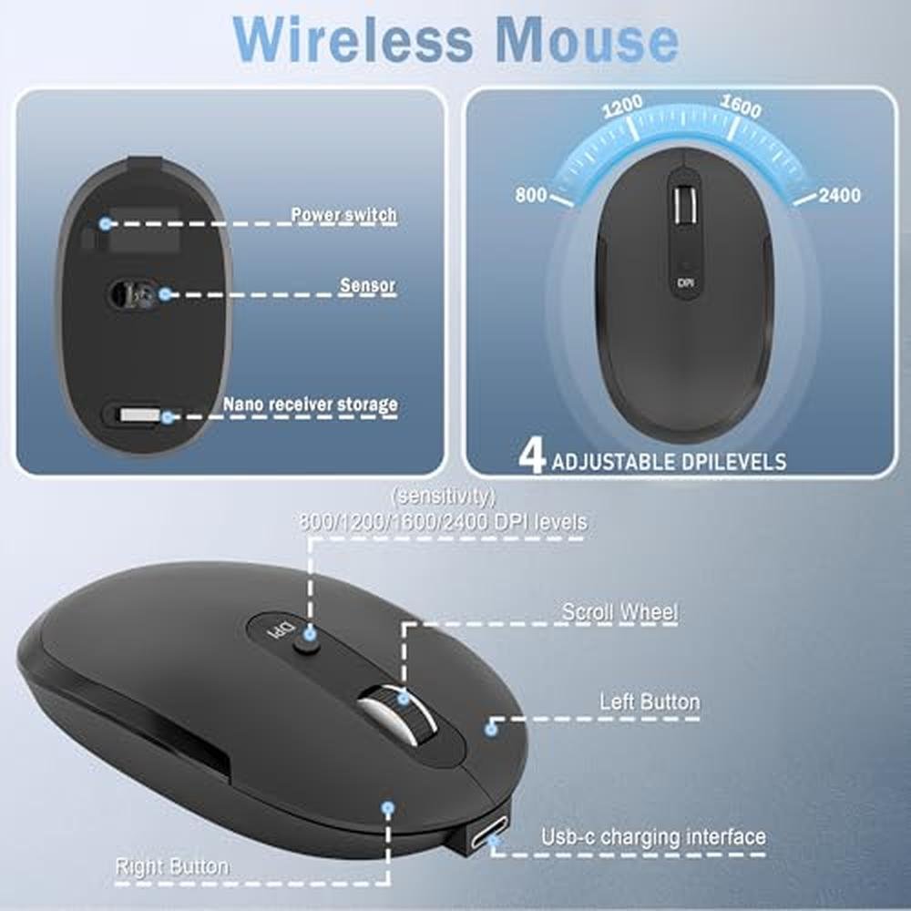 Elevate your gaming experience with our premium wireless mouse keyboard combo, designed to provide a superior gaming experience with its advanced features and sleek design. The ultra-slim silent mouse and compact full-size keyboard make it perfect for gaming, working, or browsing, and the adjustable DPI settings allow you to customize your experience to suit your needs.