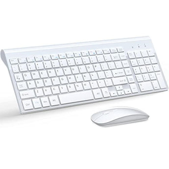 Indulge in the world of premium computing with our wireless keyboard mouse combo, expertly designed to deliver unparalleled convenience and productivity. This ultra-slim combo boasts a 2.4G silent compact USB mouse with 2400DPI resolution, ensuring precise navigation, and a scissor switch keyboard for quiet and accurate typing. The set includes a protective cover and batteries, making it an exceptional value for those seeking a reliable keyboard mouse solution for their PC, laptop, Windows, or Mac device. Whether you're immersed in work, gaming, or casual browsing, our wireless keyboard mouse combo is the ultimate accessory to elevate your computing experience.