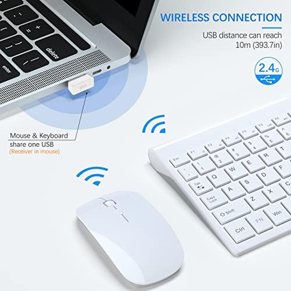 - Features a 2.4G silent compact USB mouse with 2400DPI resolution for precise navigation and accurate cursor control