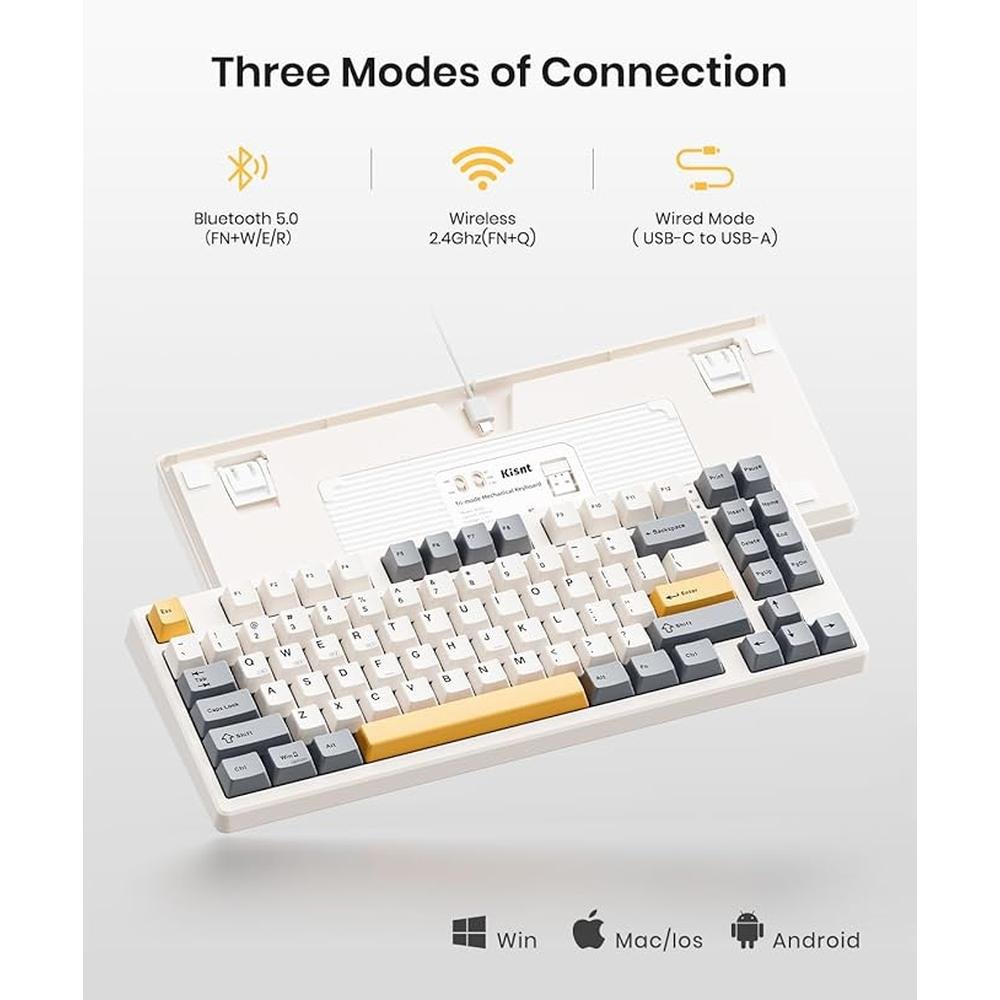 Unlock the full potential of our wireless mechanical keyboard, with its customizable hot-swappable RGB backlit keys, allowing you to personalize your typing experience to suit your style. Our product is also designed with a retro beige linear switch, providing a smooth and tactile typing experience. With its seamless connectivity and advanced noise cancellation technology, our wireless mechanical keyboard is the perfect companion for anyone seeking a high-end typing experience. Whether you're a gamer, a typist, or an entertainment enthusiast, our product is the ultimate solution for those seeking to elevate their lifestyle.
