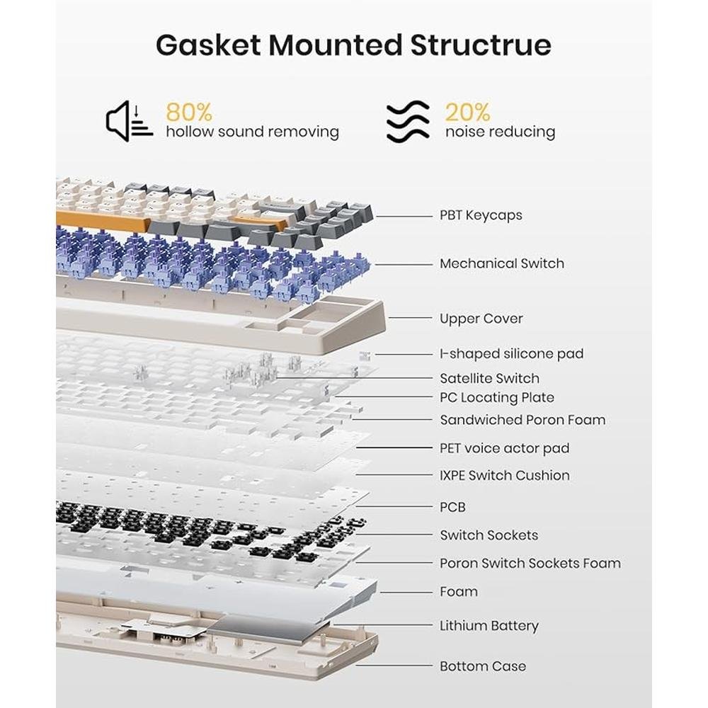 Mechanical Keyboard | Wireless Gasket Mounted with Creamy Sound Bluetooth 2.4GHz USB-C Custom Hot Swappable RGB Backlit 75% Compact Layout for Gaming Typing Win Mac PC Retro Beige Linear Switch | Premium High-End Electronics