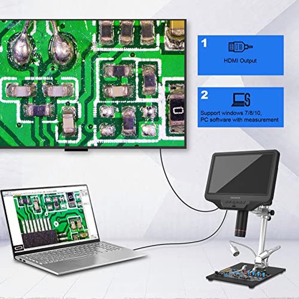 - Professional HDMI digital microscope supports multiple output methods: Ultra-high definition 2160P Video Record, 10.1 inch IPS screen while supporting HDMI output, allows you to see a more microscopic world and free your eyes all the time. Professional digital microscope Supports multiple output methodsHDMI output, PC output, WIFI output