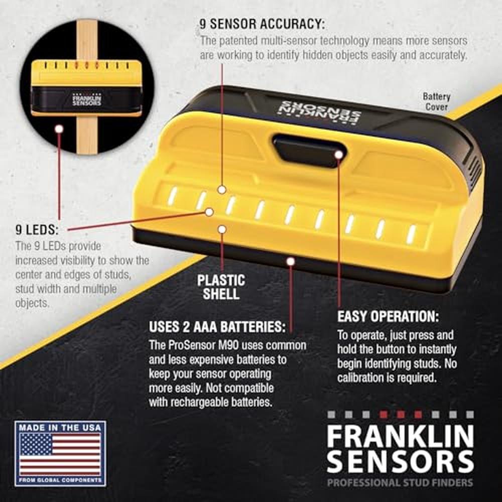 Stud Finder | Franklin Sensors ProSensor M90 9-Sensor Wood Metal Detector | Made in USA