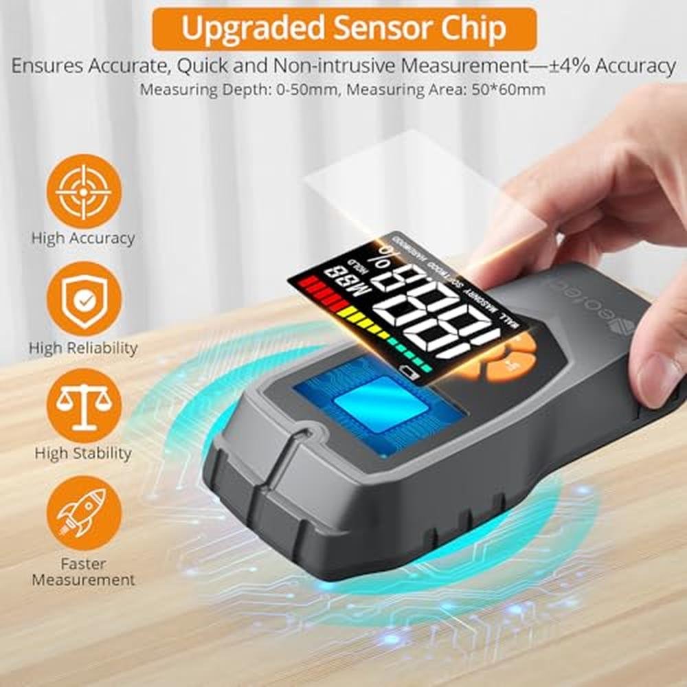 Neoteck Pinless Moisture Meter - Non-Destructive Wood & Masonry Moisture Detector with LCD Display & Sound Alarm for Walls, Drywall, Plaster, Floor, Concrete