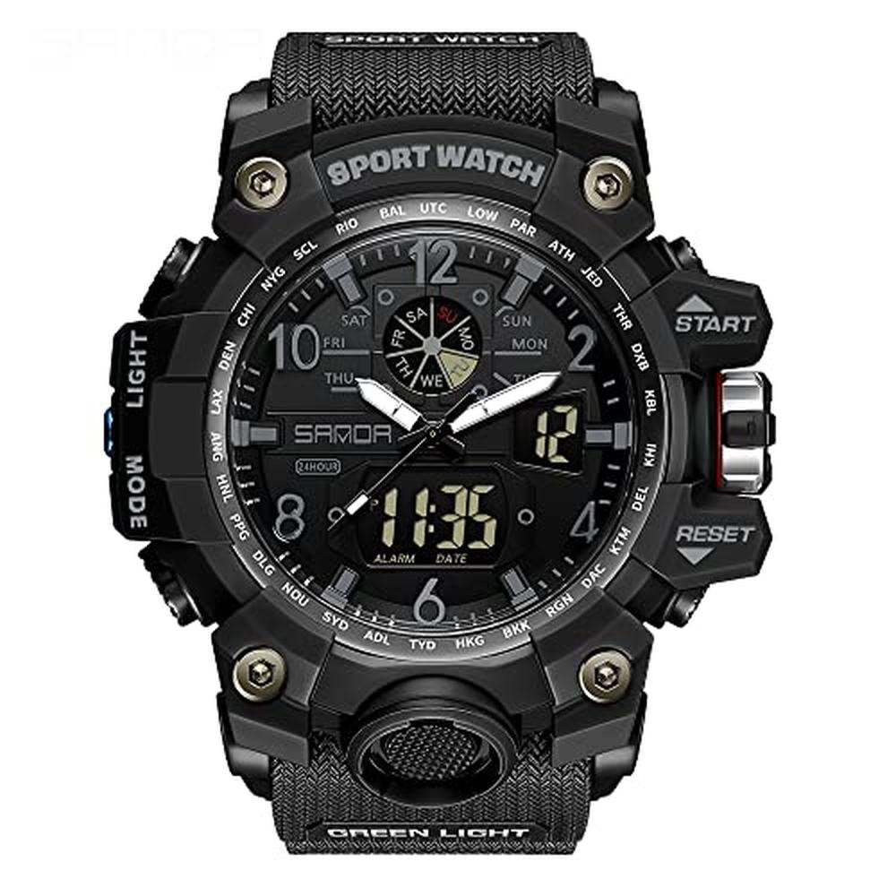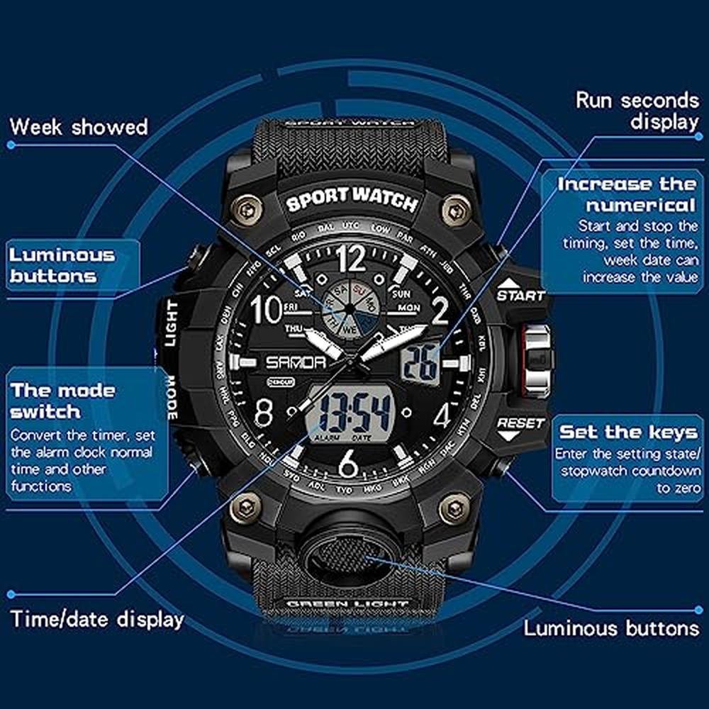 - Multifunction Men's Sports Watches: Stopwatch, alarm, LED backlight, calendar(date, week display), 12/24 hour time format, dual time, shockproof watch
