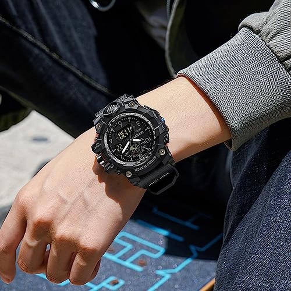 - Mens Military Watch: Cool large sporty dial designed, big face diameter (2.12 inch/54mm), Digital and Analog dual displays and mulitifunction watch, fits both outdoor and indoor activities, such as running, hiking and so on, easy to set up after reading the manual