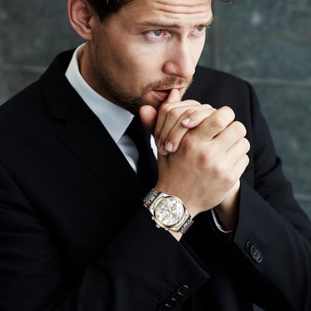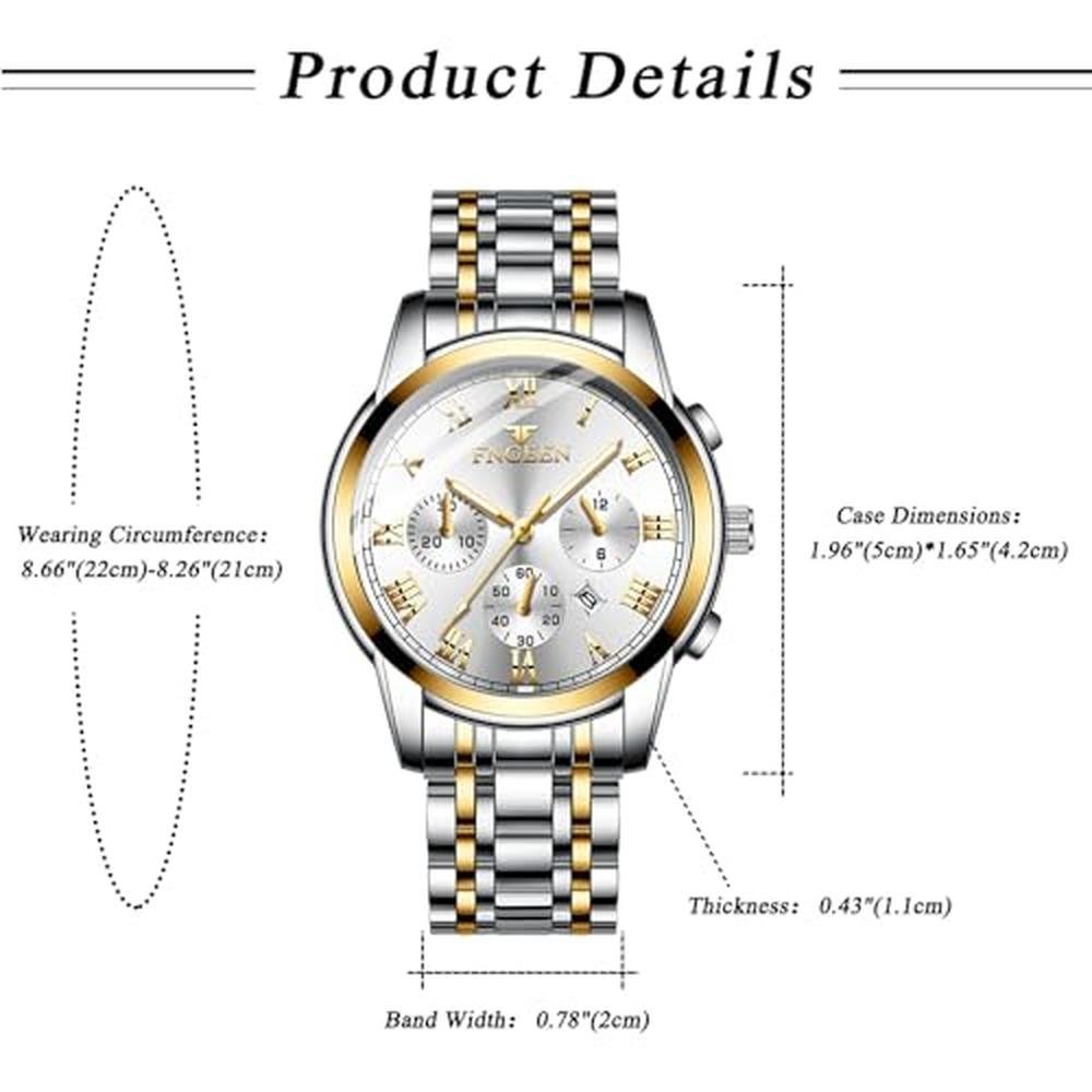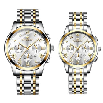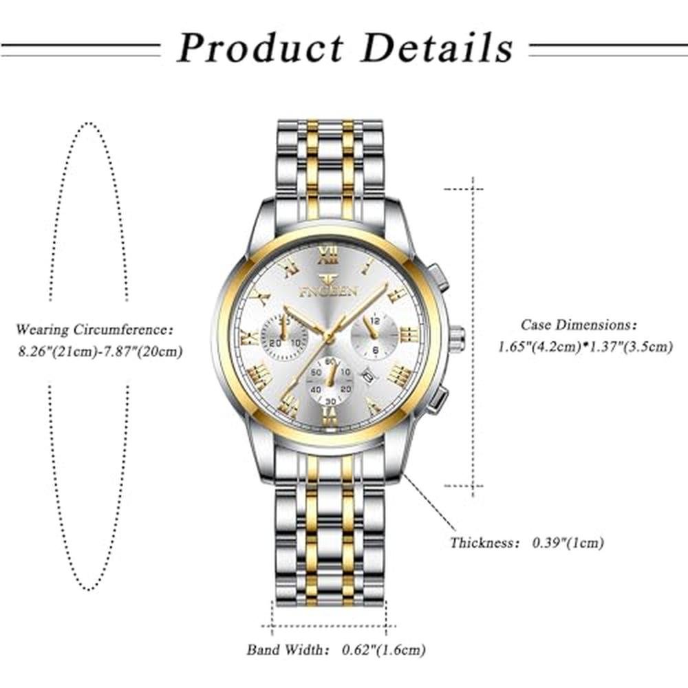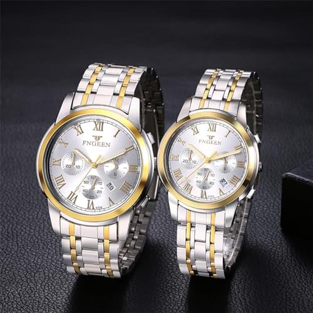 Aroncent Valentines Couple Pair Watches: His and Hers Waterproof Watches with Three Eyes Roman Numerals Dial Calendar Luminous Hands - Quartz Analog Wristwatches for Men and Women - Gold White