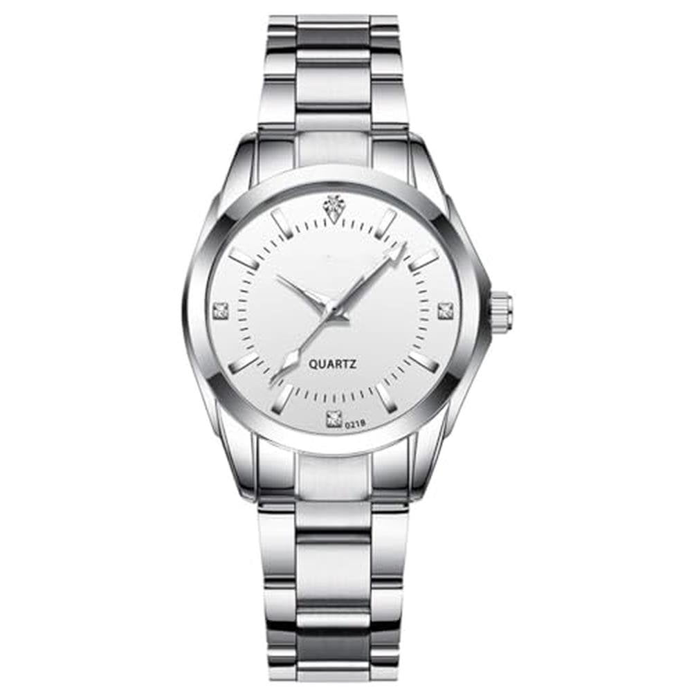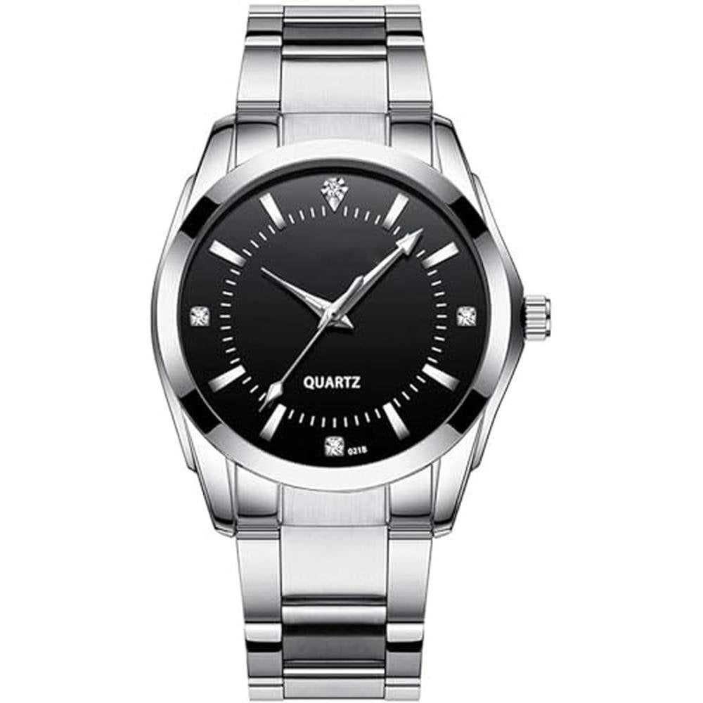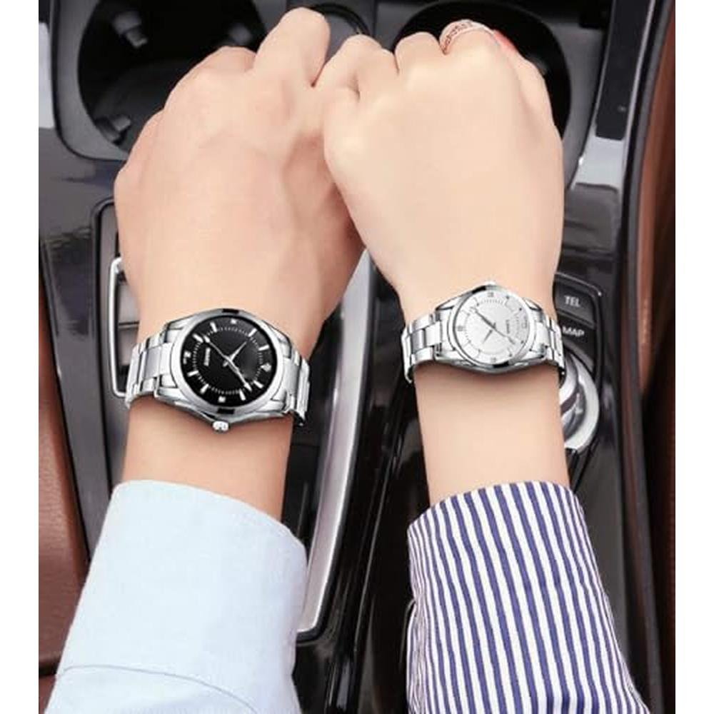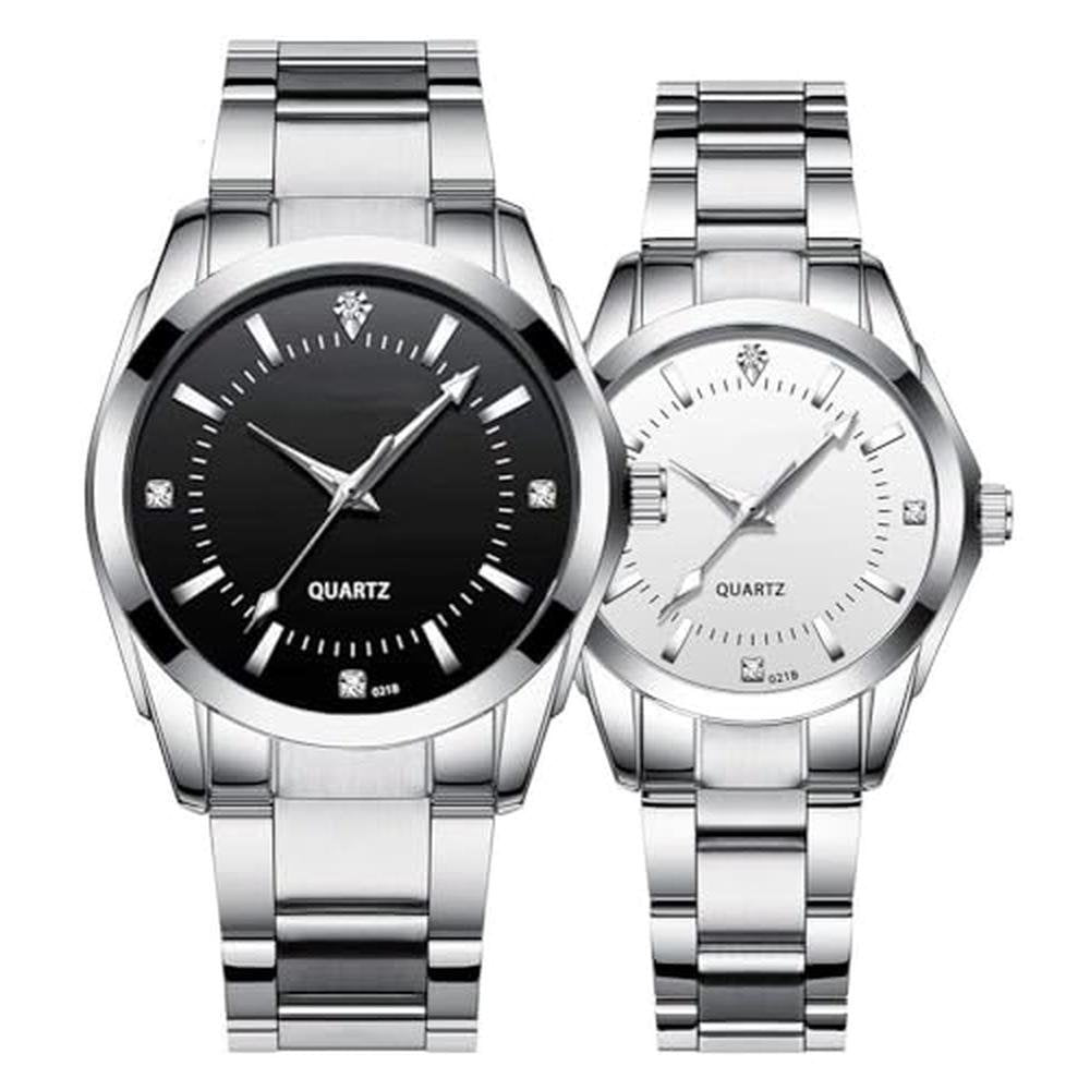 Couple Watches Men and Women Gold Silver Stainless Steel Watch Fashion his and Hers Watches Set (Black White)