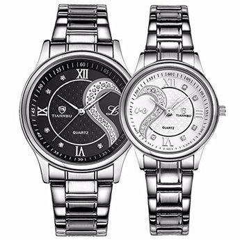 DREAMING Q&P Stainless Steel His and Hers Wrist Watches (Black & White)