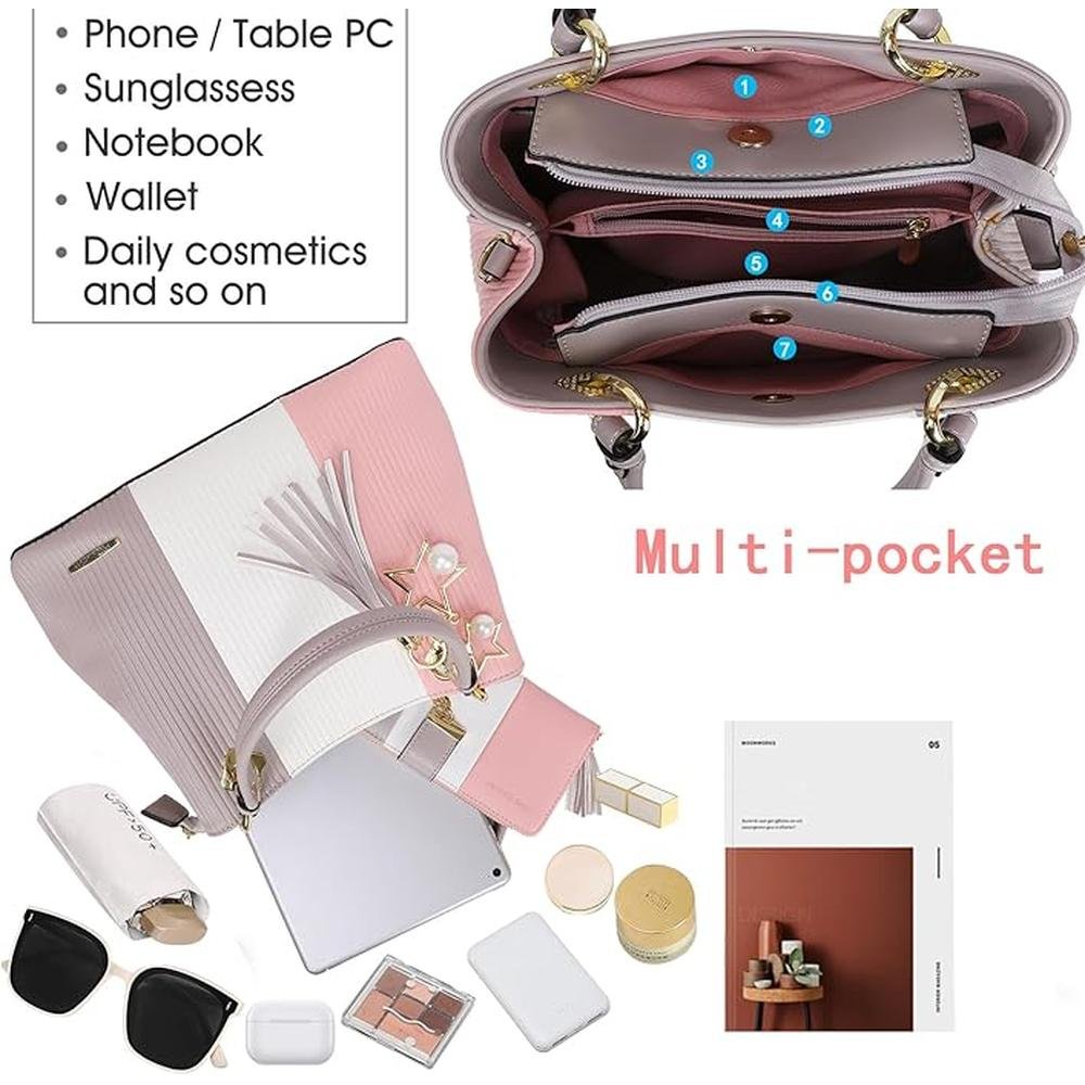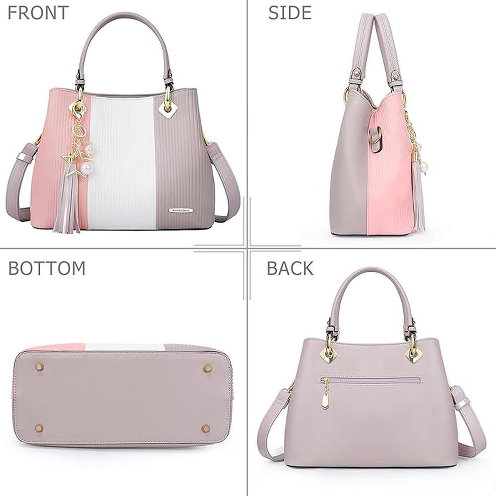 Handbags for Women with Multiple Internal Pockets in Pretty Color Combination, Women's Satchel Handbag