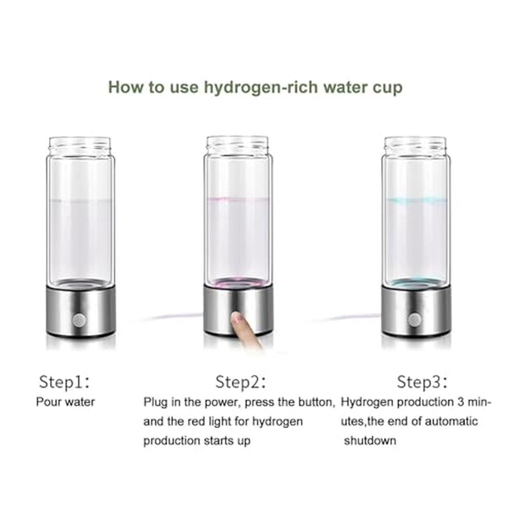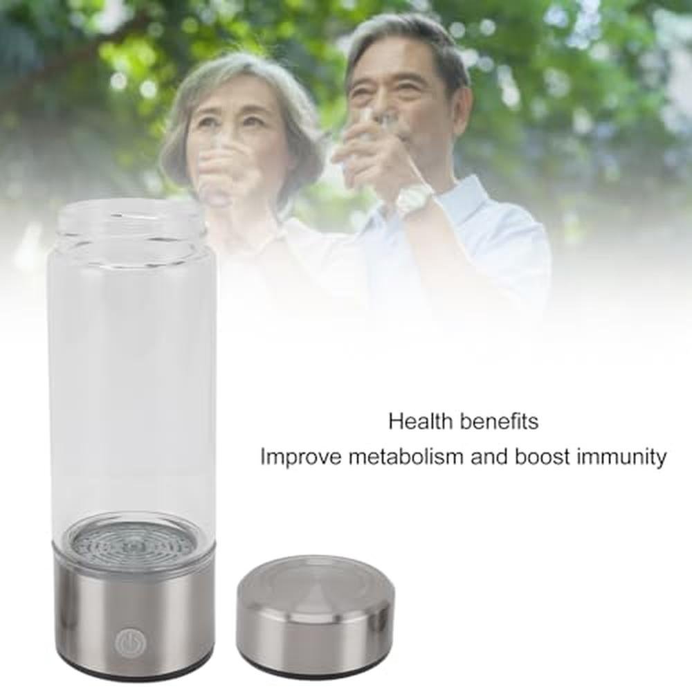 [Lightweight and Portable]: Compact and lightweight design makes it easy to carry for home and travel use, ensuring hydration on the .[ Glass Material]: The excellent glass body ensures safety and durability, to wear and high temperatures for long-term use.[Efficient Electrolysis Technology]: Advanced electrolysis technology efficiently generates hydrogen-rich water for improved health.[Drinking Water]: Hydrogen-rich water offers health such as improved metabolism and enhanced immunity for overall well-being.[Ensure Water Quality]: Built-in filter removes impurities and odors, guaranteeing pure and delicious tasting water for use.Spec:Item Type: Hydrogen Water BottleMaterial: High borosilicate glassBattery Type: lithium batteryBattery Capacity: 1000MAHPackage List:1 x Hydrogen Water Bottle1 x Charging Cable1 x User Manual