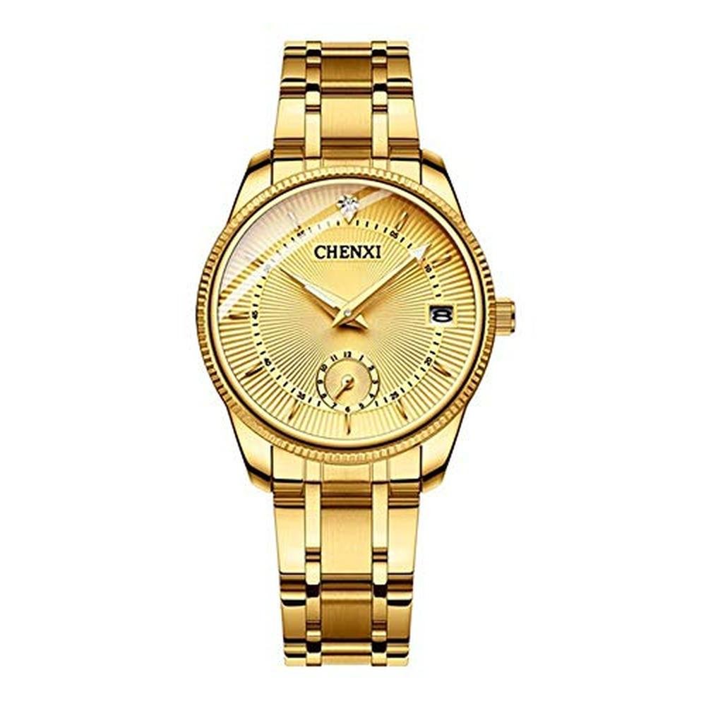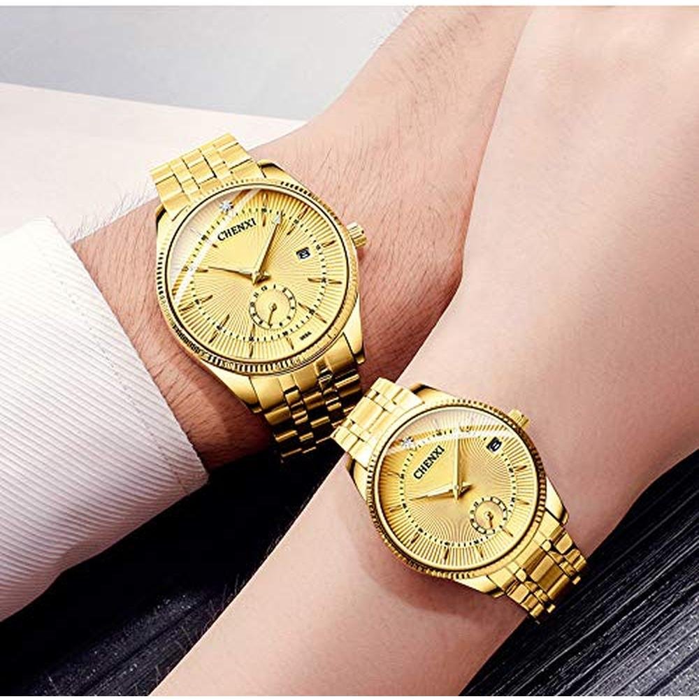 MASTOP Couple Watches Dress Wrist Watch Golden Watch Men Women Stainless Steel Waterproof Quartz Watch (Gold)