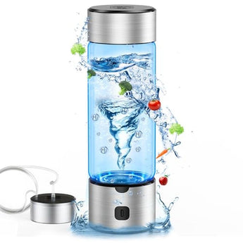 Upgrade your hydration with our Hydrogen Water Bottle Generator designed to produce high-concentration hydrogen water (1600-2200 ppb) in just 3 minutes. Using advanced SPE and PEM technology, it separates pure hydrogen while removing harmful residual chlorine and ozone, ensuring every sip is clean and healthy. The 460ml high borosilicate glass body is heat-resistant, safe, and durable. A food-grade silicone seal prevents leaks, while the EVE anti-slip pad at the base ensures stability. The one-button operation offers two modes: Quick Hydrogen Mode (3 min) Daily hydrogen-rich water generation. Deep Cleaning Mode (5 min) Removes limescale and resets electrodes. Perfect for home, office, gym, or travel, this portable and rechargeable hydrogen water maker is the ideal gift for health-conscious individuals. For best results, use mineral or purified water to achieve maximum hydrogen concentration.