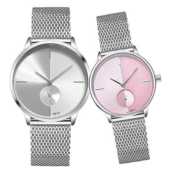 Movement :Quartz Movement Gender:Couples Watches Display: Analog Band Material: Stainless Steel Mesh Belt Men Size Dial Diameter: 40mm Case Thickness: 9.5mm Band Width: 20mm Wristband Length: 235mm Weight: Approx 61g Women SizeWatch band length:21cm Watch band Width:1.4cm Watch case diameter: 3.2cm Watch case Thickness:0.9cm Weight:48g Minimalist design will make you feel more relaxed. Original movement which allows for precision in the watches timekeeping. stainless steel watch band which is soft, breathable and comfort. This is an elegant, beautiful, but yet simple watch, which is attractive enough for daily wear or party. WATER RESISTANT 3ATM: Perfect for all kind of sports, indoor and outdoor activities or daily use.