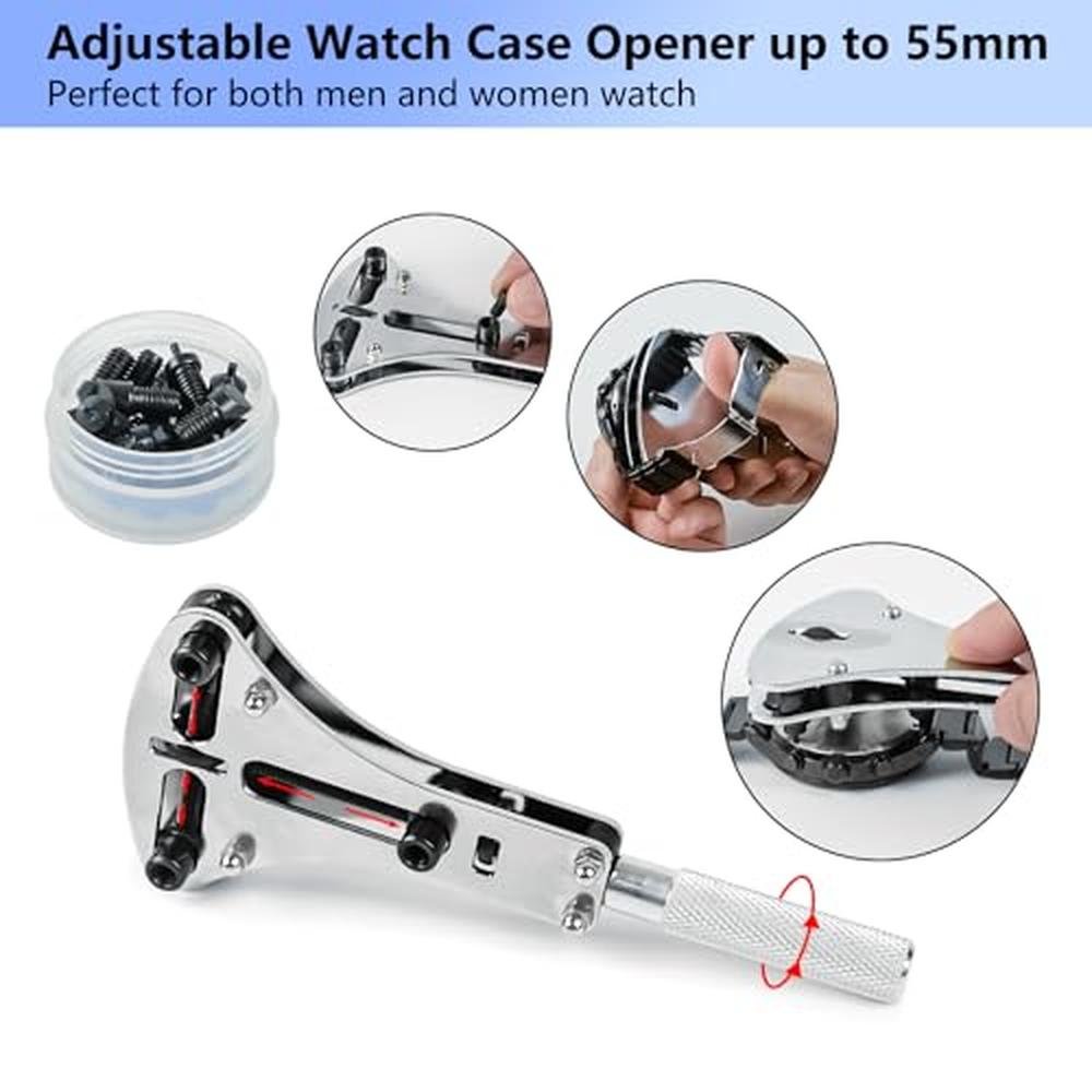 Included Components | 1X Adjustable Case Opener, 1X Watch Back Pry Knife Opener, 1x Watch Band Holder, 1x Watch Press, Other Watch Repair Kit |