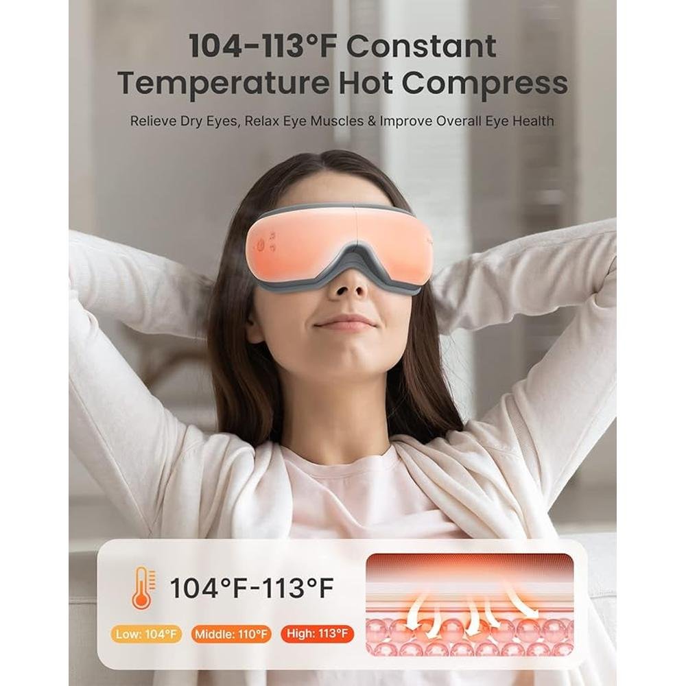 - Enjoy seamless relaxation with our eye massager's heat compress feature, ensuring fast and reliable relief from eye strain, ideal for heavy screen users.
