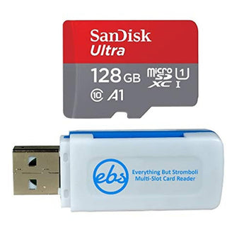 SanDisk Ultra SDHC and SDXC cards are a top-tier choice for Android-powered cell phones and other smartphones and tablets. With SanDisk Ultra microSD UHS-I cards, you'll benefit from faster downloads, higher capacity, and better performance to capture and store high-quality pictures and Full HD video. Take advantage of ultra-fast read speeds to save time moving photos and videos from the card to your computer. Rated A1 for better app performance, these cards ensure that your device runs smoothly and efficiently. With Class 10 video ratings, you'll be ready to capture high-quality Full HD video (1080p). SanDisk Ultra microSDHC and microSDXC UHS-I cards are waterproof, temperature proof, X-ray proof, and shockproof, giving you peace of mind knowing that your memories are safe. For all these reasons, smartphone photographers worldwide trust SanDisk to keep their memories secure. The model number SDSQUAR-128G-GN6MN is compatible with a range of Motorola devices, including the One, Moto Z4, Z3, Z3 Play, E6, E5, E5 Play, E5 Plus, G6, G6 Play, G6 Plus, G7, G7 Play, G7 Plus, and G7 Power. This bundle includes (1) 128 GB microSD card and (1) Everything But Stromboli (TM) Multi-Slot Card Reader, which features SD, Micro SD, M2, and MS slots for easy transfer, making it a comprehensive solution for all your storage needs.