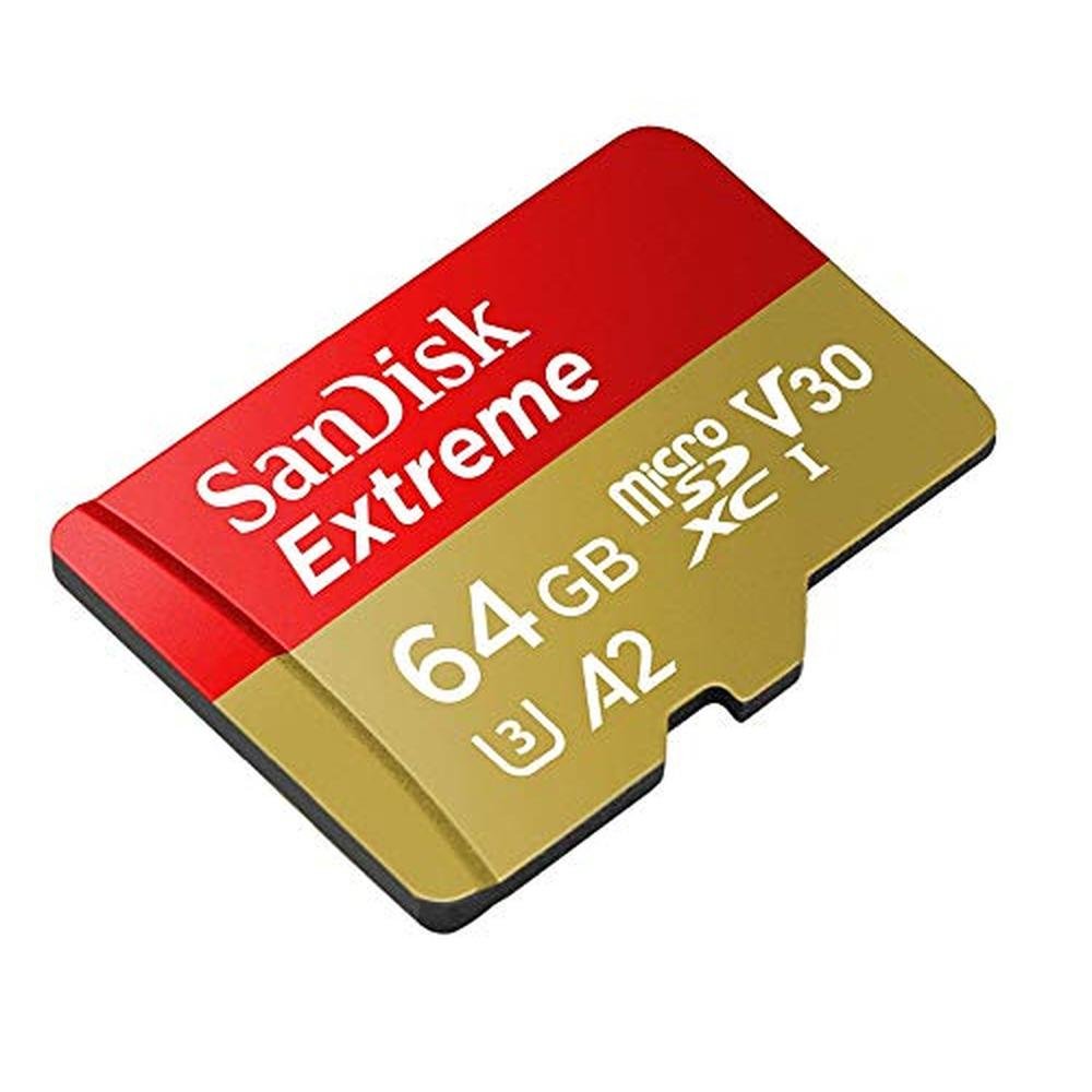 Record the action and get Full HD & 4K Ultra HD video on Android smartphones, drones, and GoPro action cams. SanDisk microSDXC and microSDHC cards are temperature proof, water proof, shock proof and x-ray proof so they will endure tough conditions and rugged terrains. The extremely fast speeds help capture the adventures you and your friends experience. Transfer your data quickly and record at super fast speeds. Compatible Memory card for GoPro Hero8 and Go Pro Max 360 action cameras. Also compatible with the GoPro Hero 7 Black, Hero7 Silver, Hero 7 White, Hero 6, Hero (2018), Hero 5, Fusion, Hero 4 Black and Silver, Session, Hero3+, Hero 3 Black. Bundle includes: (2) 64 GB SanDisk Memory Card Micro Extreme and (1) Everything But Stromboli MicroSD (TF) Card Reader.
