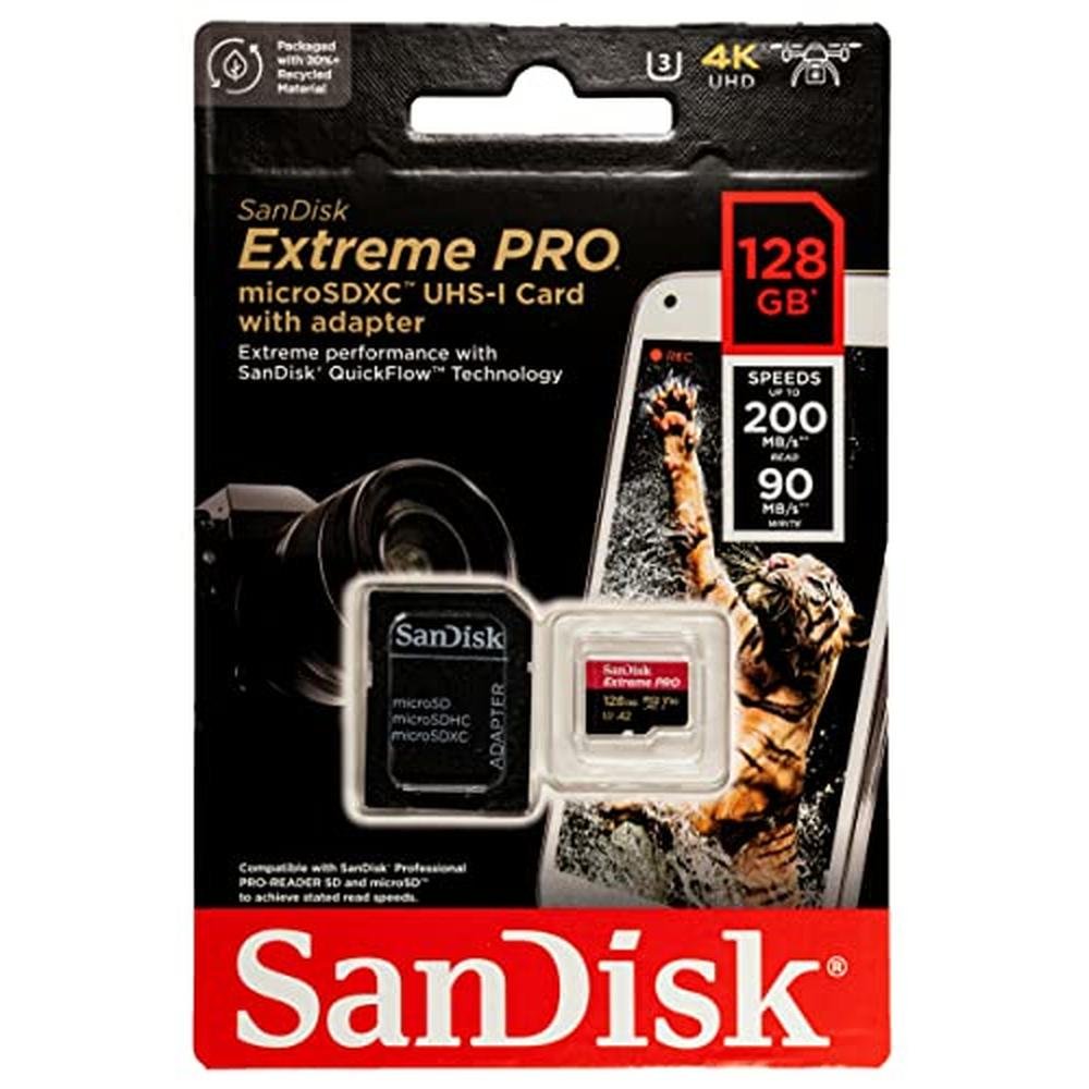 SanDisk Extreme Pro 128GB V30 A2 MicroSDXC Memory Card for DJI Works with Mavic Air 2 Drone 4K UHD U3 Bundle with (1) Everything But Stromboli MicroSD Card Reader